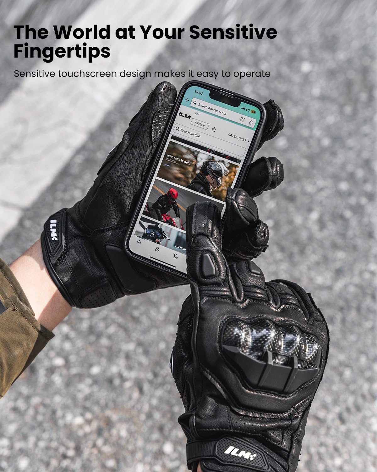 Ilm Air Flow Leather Motorcycle Gloves For Men And Women Model-Grc01L (M, Black-Long)
