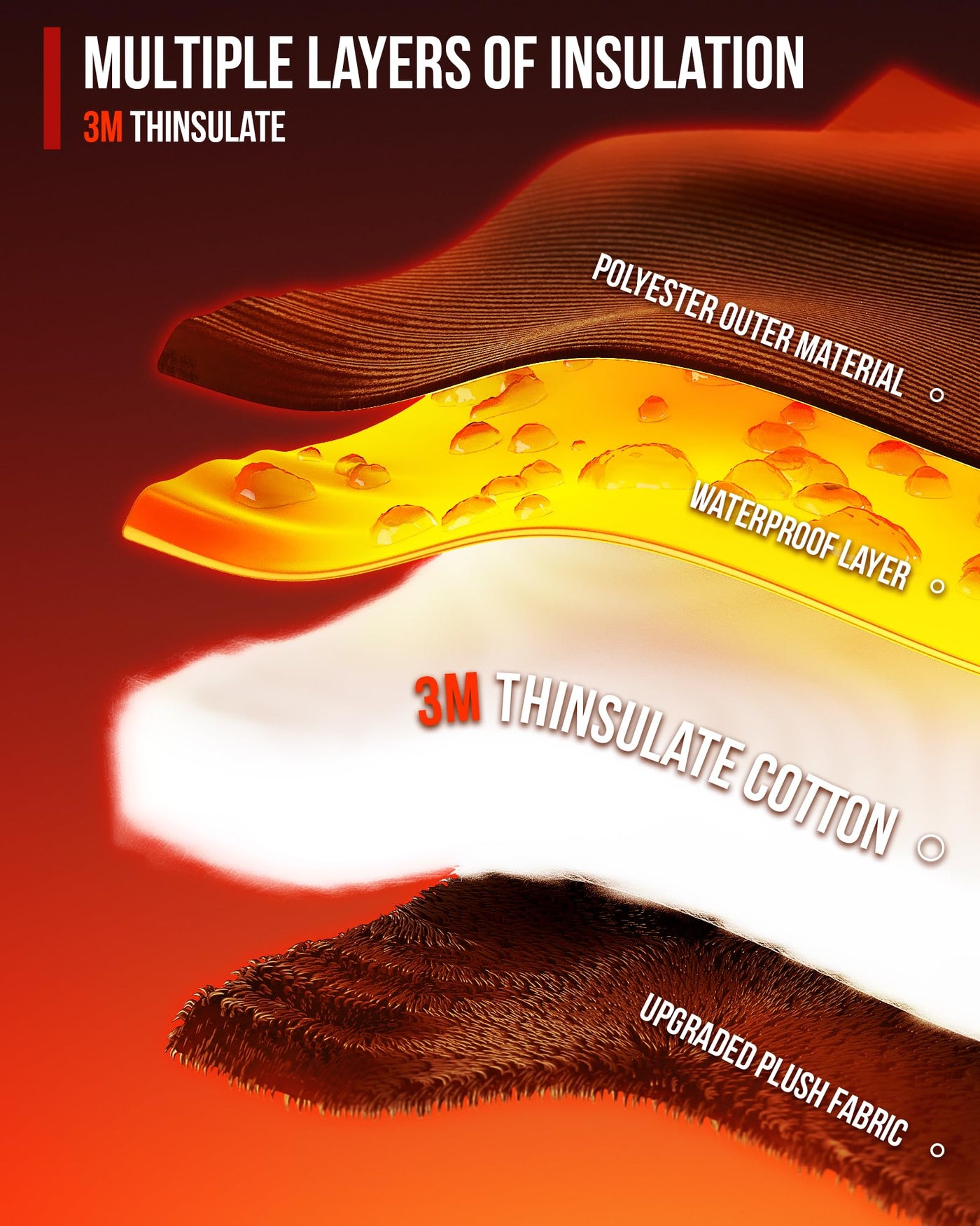 ?Exceptional Thermal Performance? IRON JIA'S winter motorcycle gloves are filled with 3M cotton, offering a thermal insulation performance 1.5 times greater than that of traditional down. By effectively trapping generated heat, these motorcycle gloves ensure an outstanding warmth experience, keeping your hands comfortably warm in cold weather | ?High-Performance Waterproofing? Crafted from high-performance waterproof materials, IRON JIA'S motorcycle gloves provide comprehensive protection in harsh weather conditions. Even in the rain, these gloves keep your hands dry, enabling you to focus on riding without being affected by the weather | ?Comprehensive Safety Protection? Safety is of top priority in the design of IRON JIA'S motorcycle gloves. Providing hard shell protection for your joints and fingers, they effectively reduce the impact of collisions. The palms are equipped with TRP padding for additional support, and the anti-slip gel design enhances grip, ensuring comprehensive and reliable protection for safe riding | ?Intelligent Touchscreen Experience?Featuring specially upgraded touchscreen-compatible fingertip materials, these motorcycle gloves enable you to effortlessly use smartphones and navigation devices without the need to remove them | ?GRS-Certified Fabric? IRON JIA'S winter motorcycle gloves are made from materials certified by the Global Recycle Standard (GRS), demonstrating our commitment to a green future