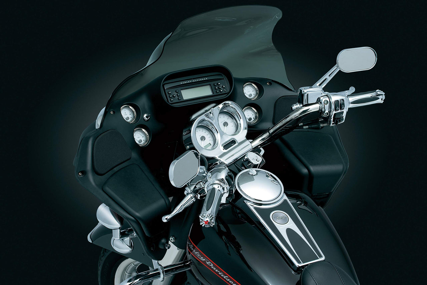 The Kuryakyn 3769 Glove Box Accents Are A Great Looking Chrome Accessory That Is Just Enough To Set Your Bike In A Class All Its Own. Features Three-Dimensional Depth And Curves. Giving Your Motorcycle A Showroom Sparkle. Includes (1) Right Side Glove Box Accent—Chrome, (1) Left Side Glove Box Accent—Chrome, (1) Alcohol Pad; Suggested For Installation: Thoroughly Clean The Area Of Grease, Oil, Dirt Or Other Debris To Ensure Proper Adhesion. The Kuryakyn 3769 Glove Box Accents Are Compatible With Harley-Davidson Models: '98-'13 Road Glides.