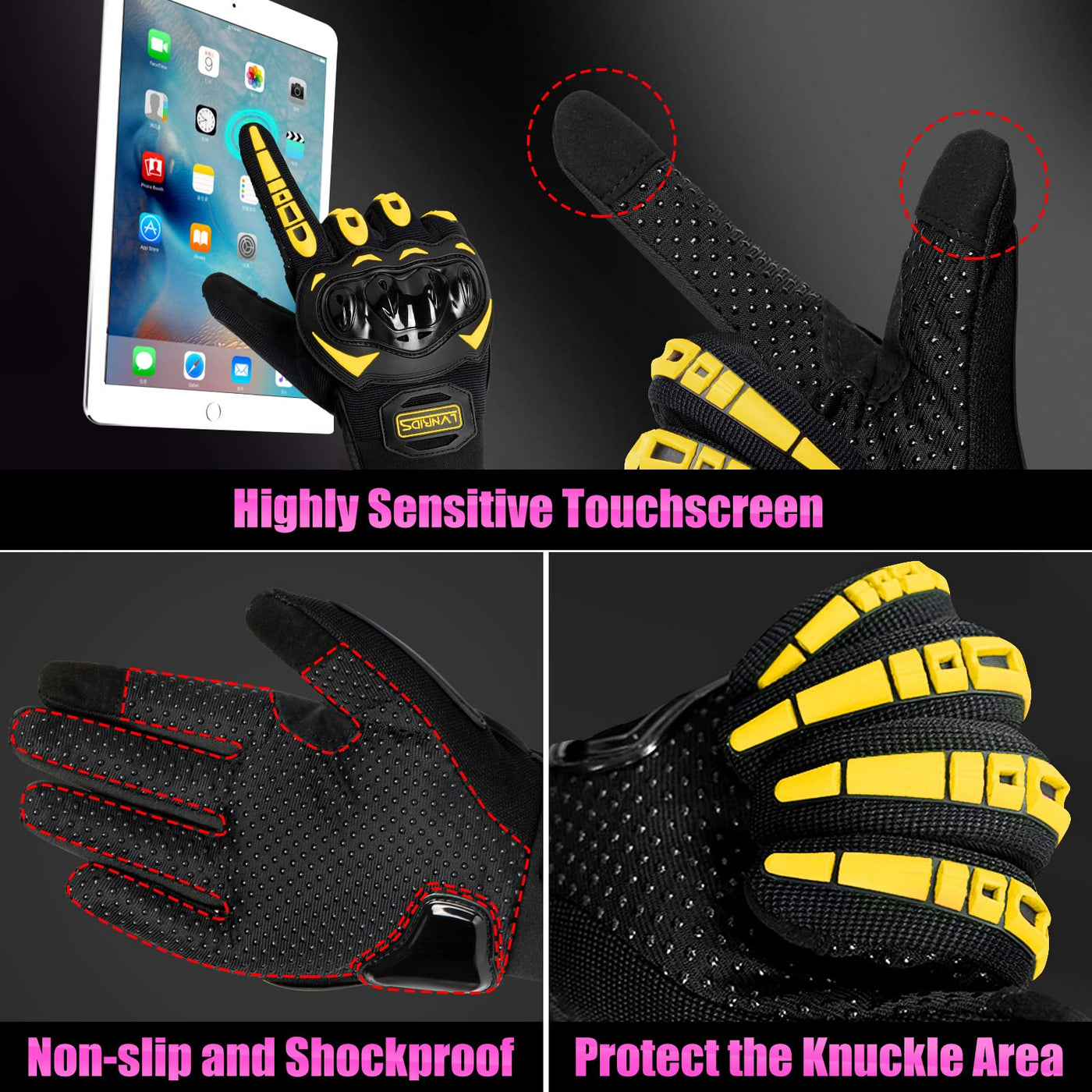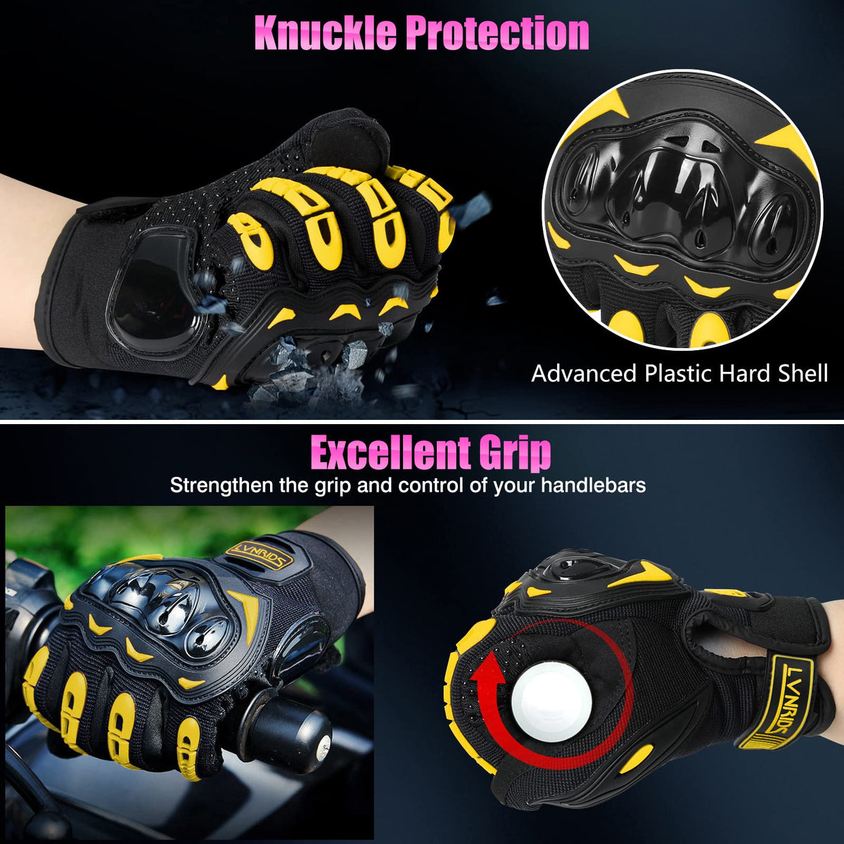 Lvnrids Motorcycle Gloves For Men Women Full Finger Touchscreen Racing Motorbike Gloves For Bmx Atv Mtb Riding Racing Cycling Ye