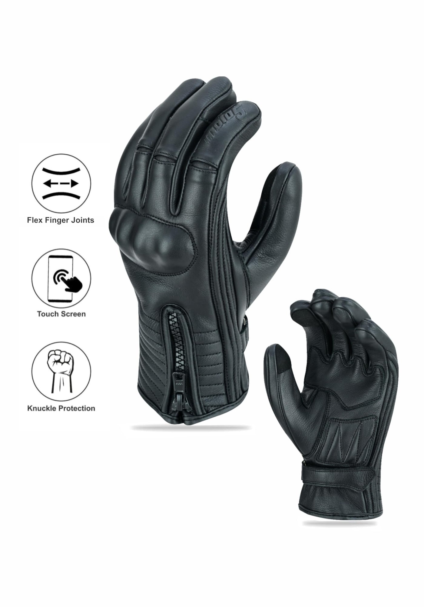 Moto5 Full Finger Leather Motorcycle Gloves For Men & Women Touch Screen Gloves Premium Street Motorcycle Durable Protective Cruiser Biker Gel Leather Motorbike Gloves (Black, X-Large)