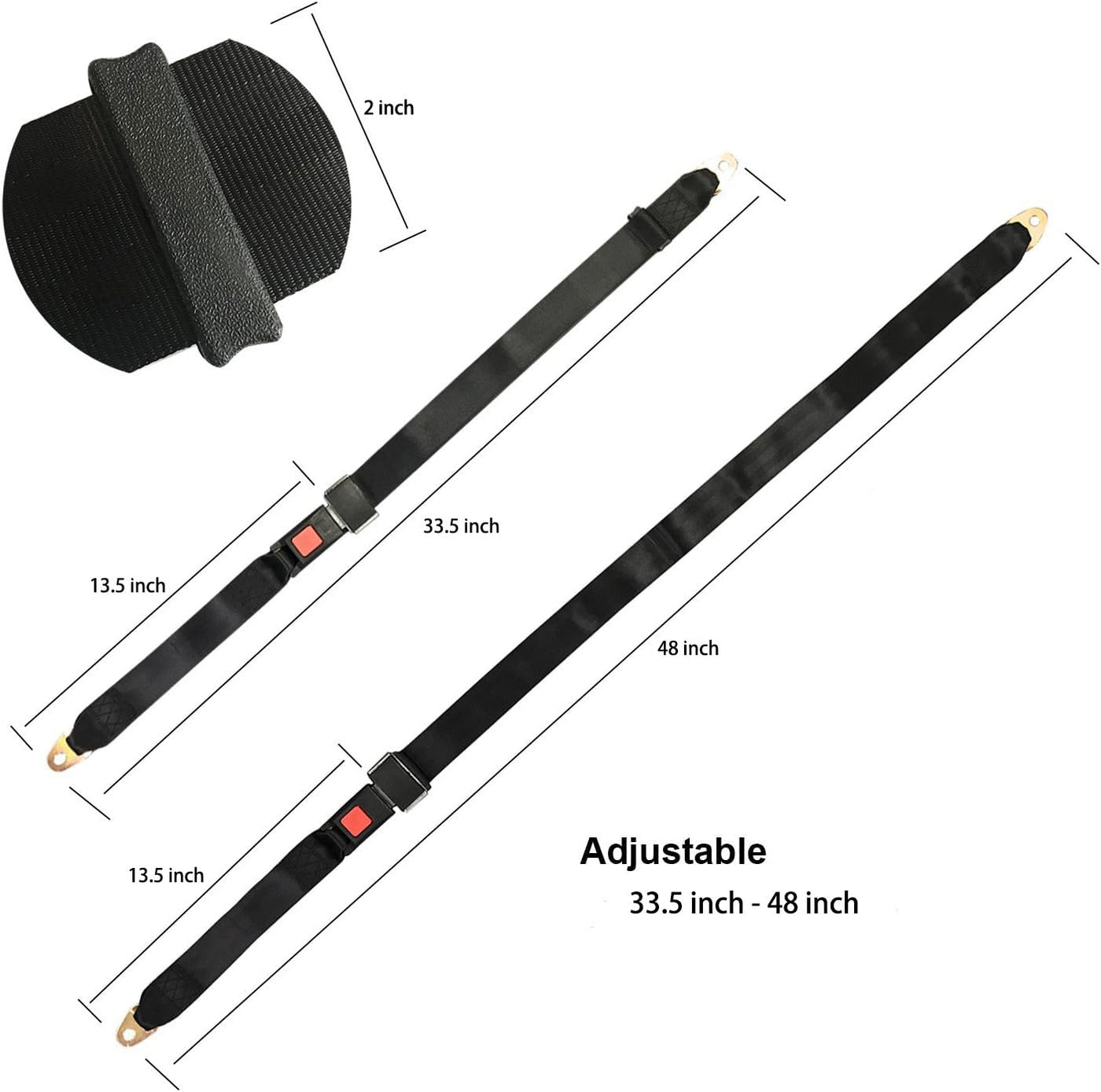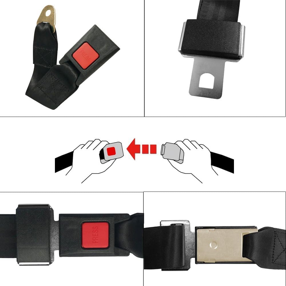 This is a brand new safety seat belt set Features: Adjustable length of the webbing Safeguard your life and comfort your ride Fits for all vehicle that have 2 bolt points Ideal for waistband belt and to replace old ,worn or damaged seat belts Easy to use In minor collisions, seat belt usage has proven to reduce the potential injury to drivers and passengers Material: High quality polyester fabric Size: Width 4.8cm/1.88''(approx) Thickness: 0.1cm/0.04''(approx) The shortest adjusted length:86cm/33.85''(approx) The longest adjusted length:126cm/49.61''(approx) Two bolt point diameter: 1.05cm/0.41''(approx) Buckle Width : 4.4cm Mounting tabs have 7/16'' holes Package Includes: 1x Car seat belt Please check the picture before you buy.
