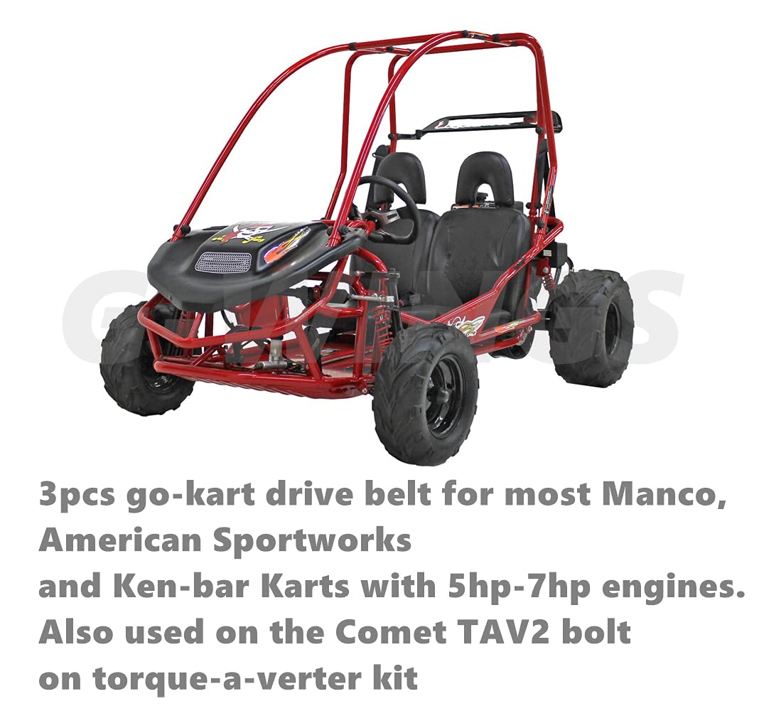 Q: How many belts are included in the package?A: The package includes three pieces of the 30 Series Torque Converter Belt, providing you with extra belts for replacements or repairs, ensuring that your go-kart remains in optimal working condition.