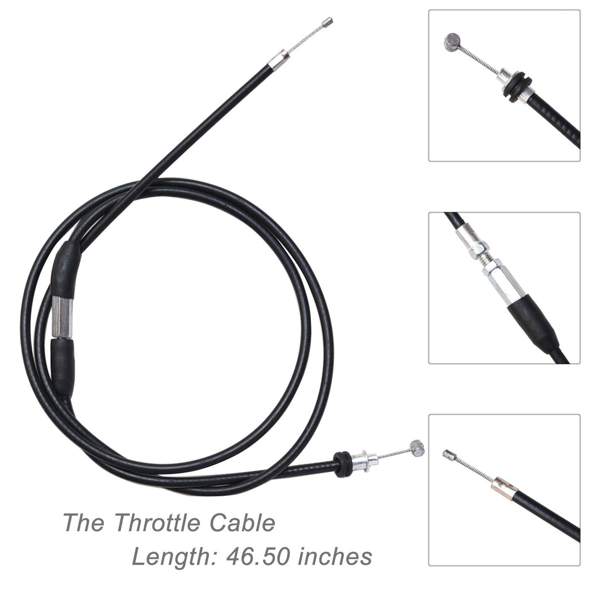 Q: How long is the inner cable of the throttle assembly?A: The inner cable of the throttle assembly measures 46.5 inches (1180mm) in length, providing ample length for installation on compatible ATVs.