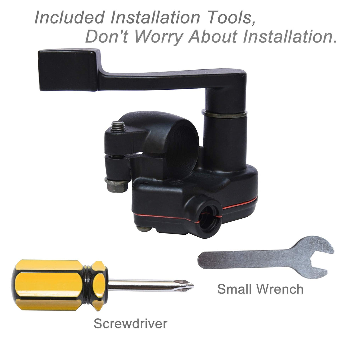 Q: What items are included in the package when purchasing the throttle assembly?A: The package includes one thumb controller, one accelerator cable, four cable ties, one screwdriver, and one small wrench, providing everything you need for installation.