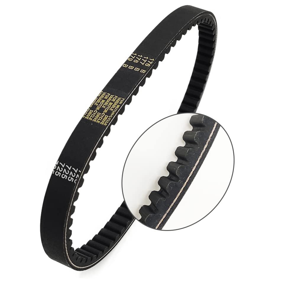 Q: What maintenance is required for the QYMOTO Go Kart Drive Belt 725?A: Regular inspection of the QYMOTO Go Kart Drive Belt 725 is recommended to check for wear and tear. Ensure that it is aligned correctly and free from debris. If you notice any signs of damage or slippage, replacement is advised to maintain optimal performance.