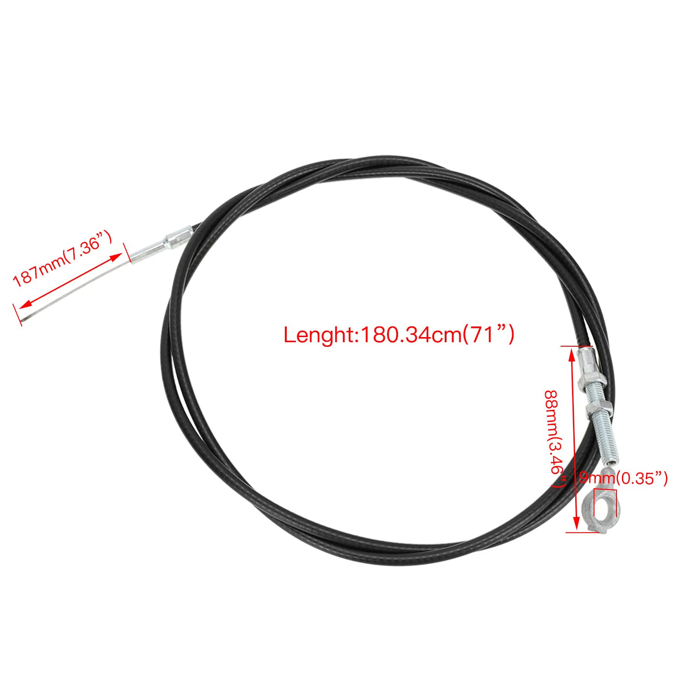 Specification: Brand YOXUFA Material: Throttle Cable Color: Black Package Size: 22 * 33 * 1cm / 8.7 x 12.99 x 0.39in Package Weight: 0.2kg / 7.05oz Product Size: 71' Total Length(Overall Cable Length) 63' Casing Length(Black Conduit Length)