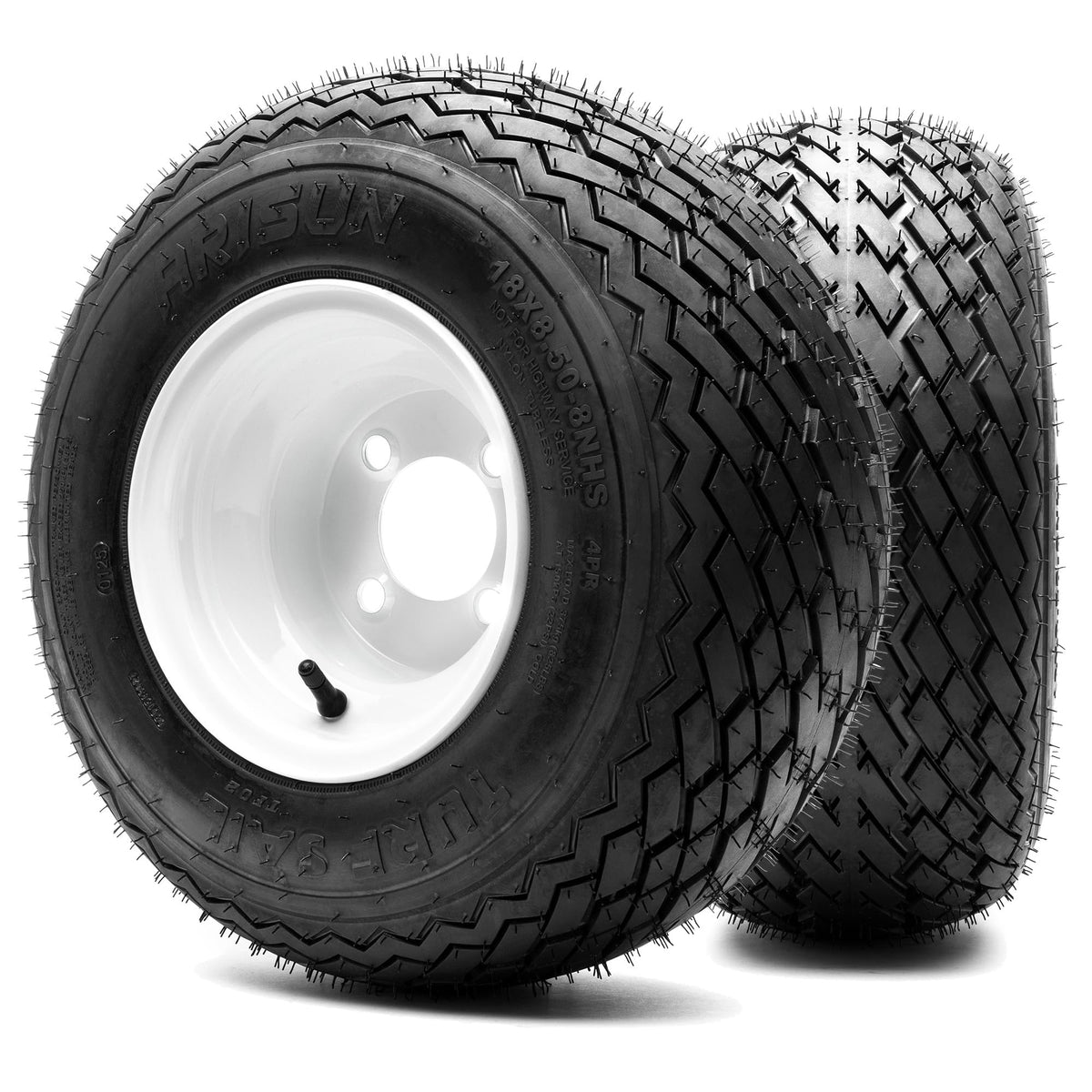 8'' Steel Golf Cart Wheels Glossy White And Odyssey Perduro (18/8.5-8) Golf Cart Tires - Set Of Two
