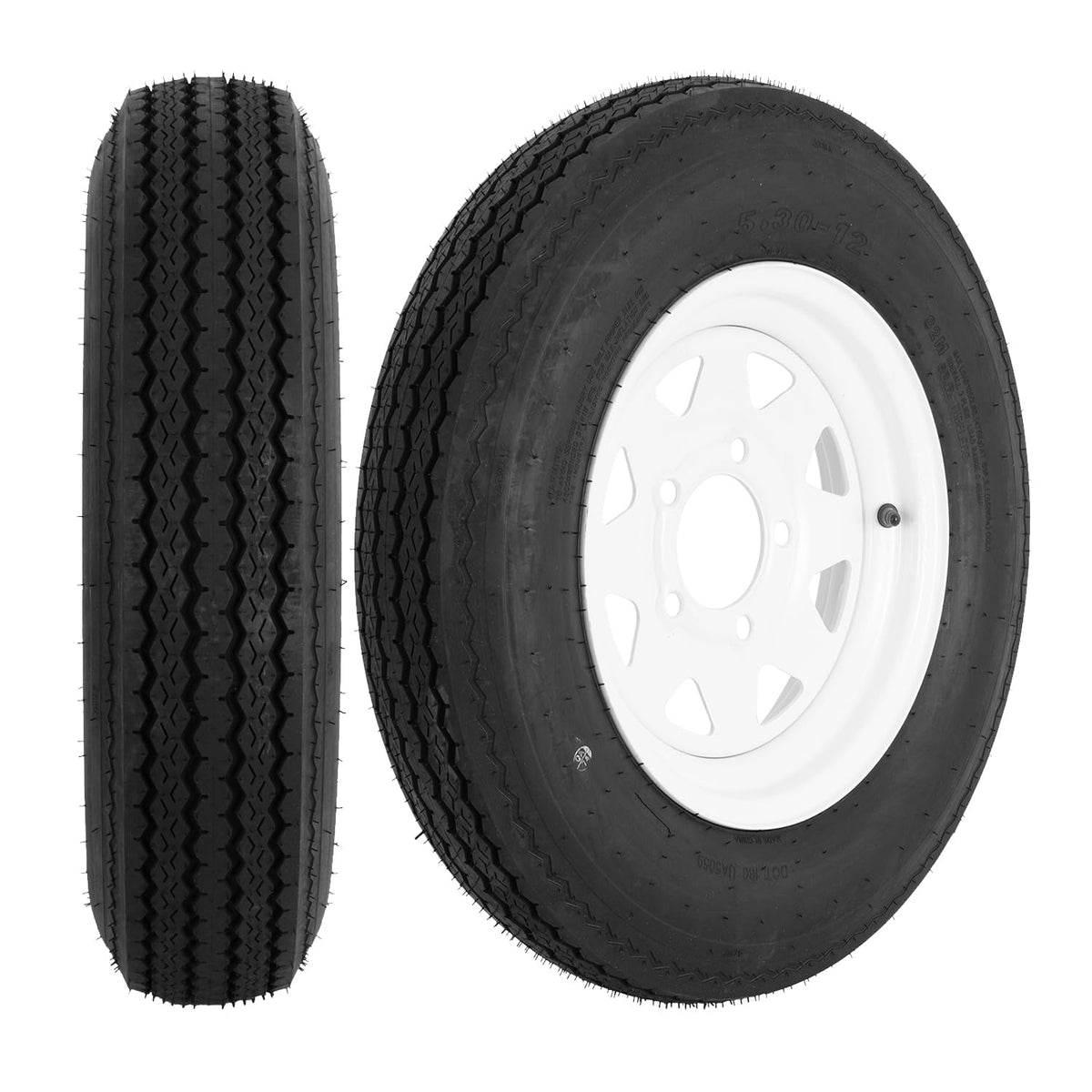 YUANXING 530-12 5.30-12 5.30 x 12 Trailer Tire on 12 '' White Rims - 5 Lug on 4-1/2 '' Wheel - Load Range C