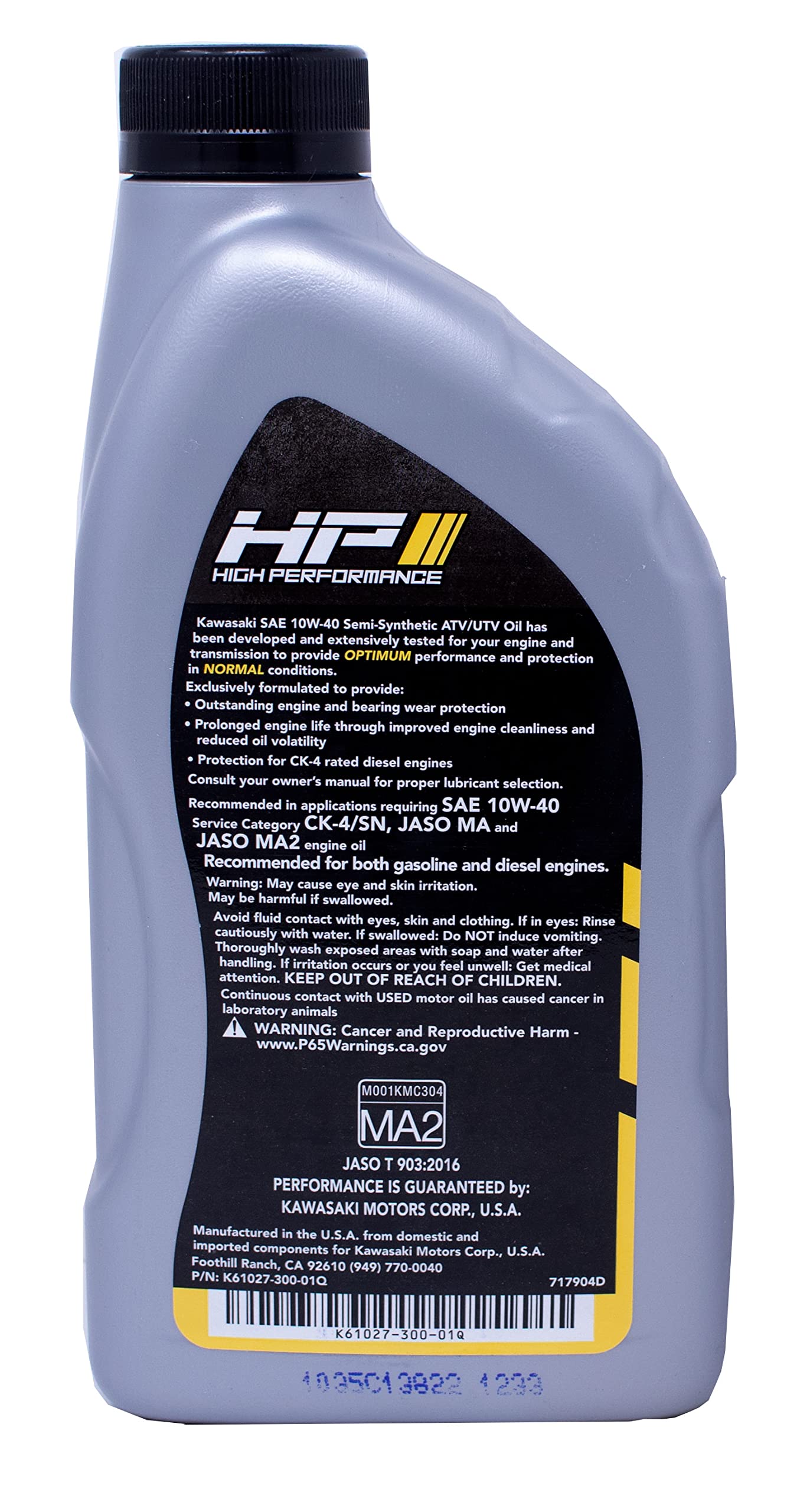 Kawasaki Atv/Utv Oil Is Formulated To Provide Maximum Engine Lubrication Over The Wide Range Of Temperatures And Operating Conditions Found In Atv'S And Utility Vehicles. Has Been Tested For Your Engine And Transmission To Provide Optimum Performance And Protection In Normal Conditions.