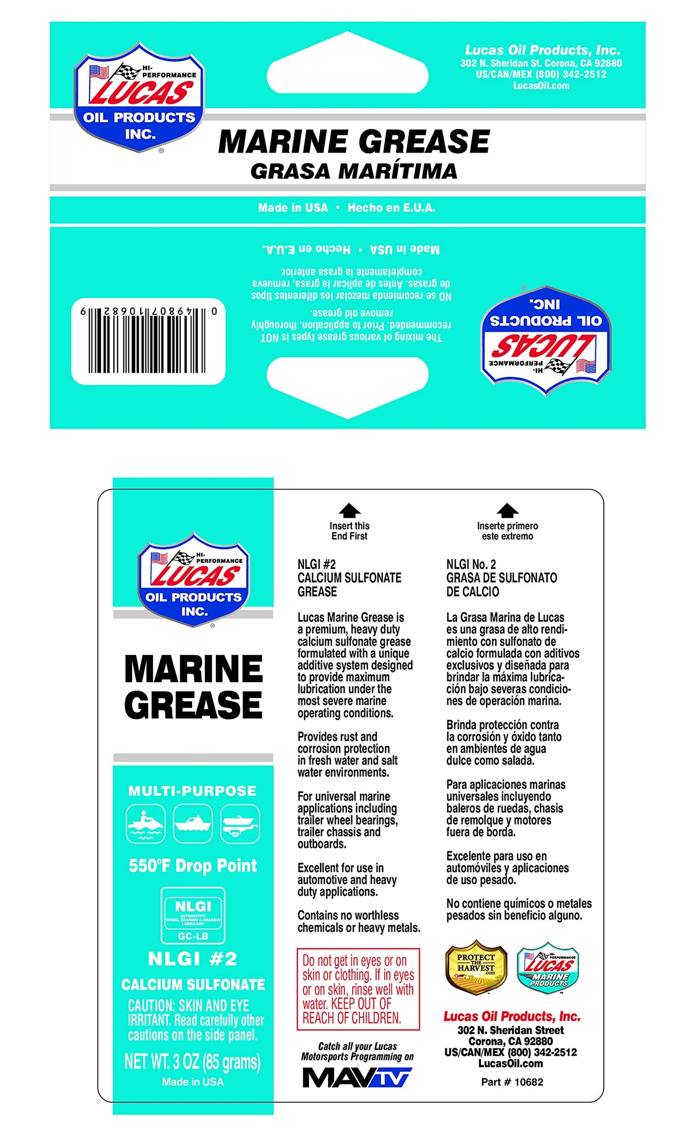 DescriptionLucas Marine Grease is a premium, extreme pressure, multi-purpose, heavy duty OBCS grease containing unique polymers, anti-wear agents and tackifiers with inherent rust and oxidation resistance to provide the highest performance properties. It has been designed to lubricate under the most severe operating conditions in marine applications and because of its adhesive properties, it effectively stays in place.