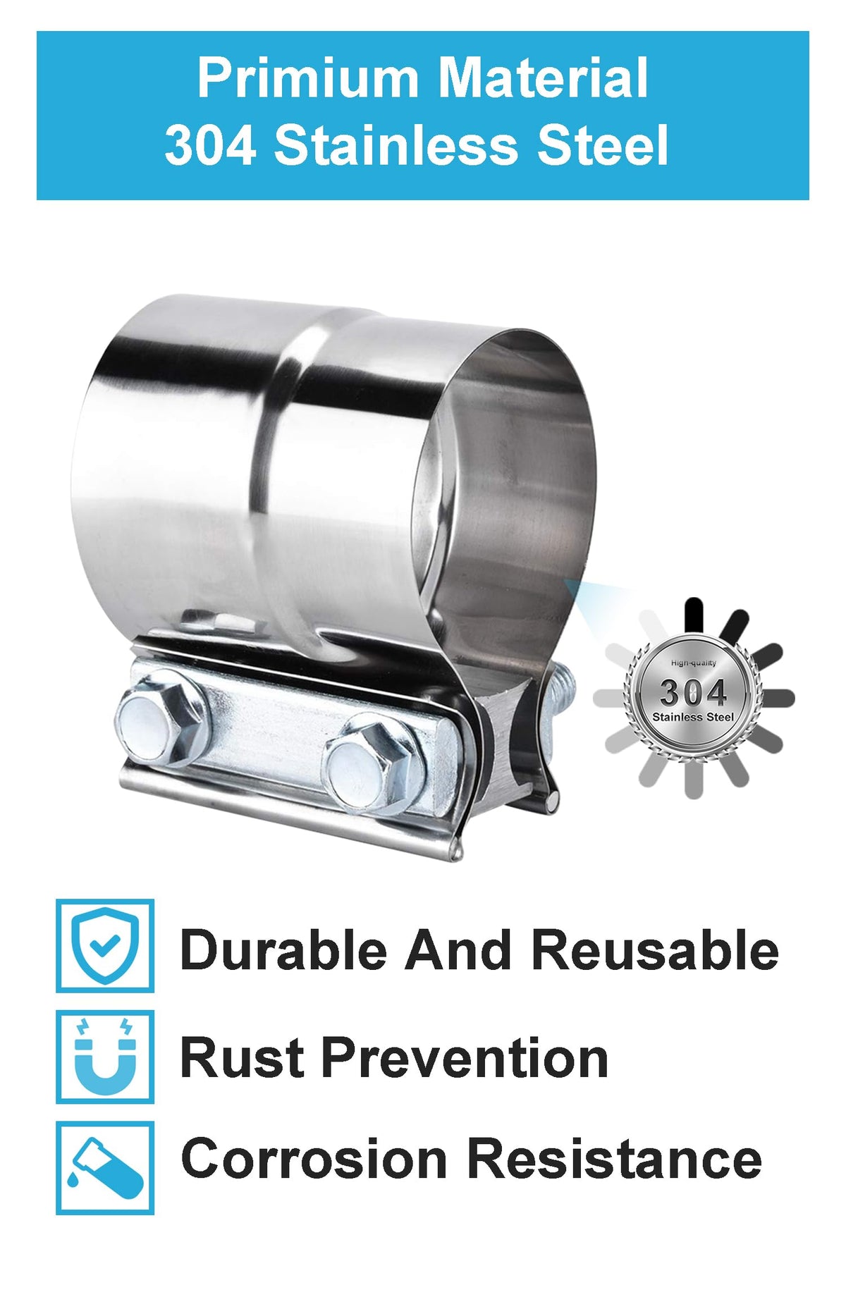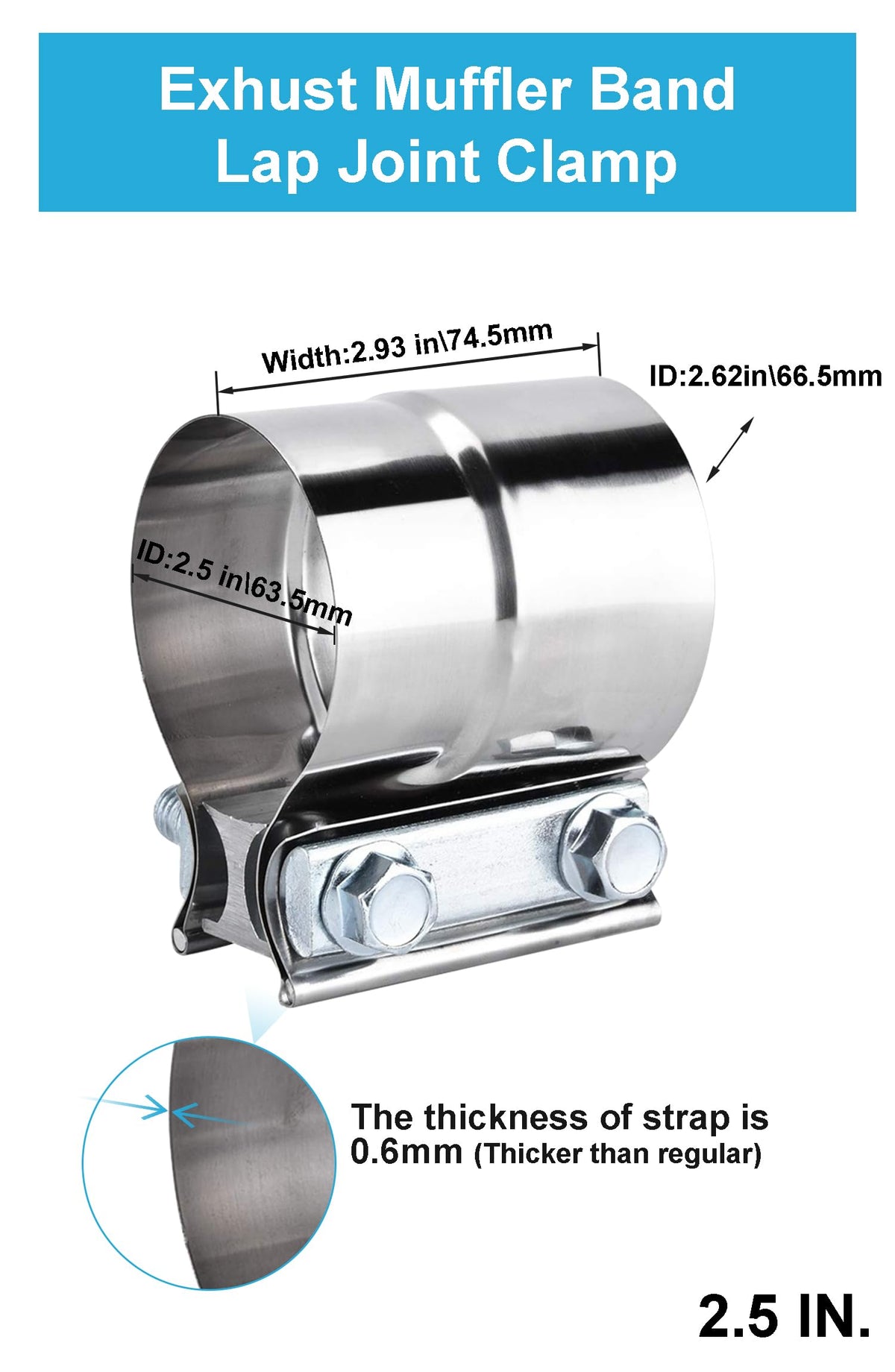 2.5 Inch Exhaust Clamps,Lap Joint Band Clamp 2 Packs,2 1/2 Exhaust Muffler Band Clamp,304 Stainless Steel Pipe Repair Clamp Deco