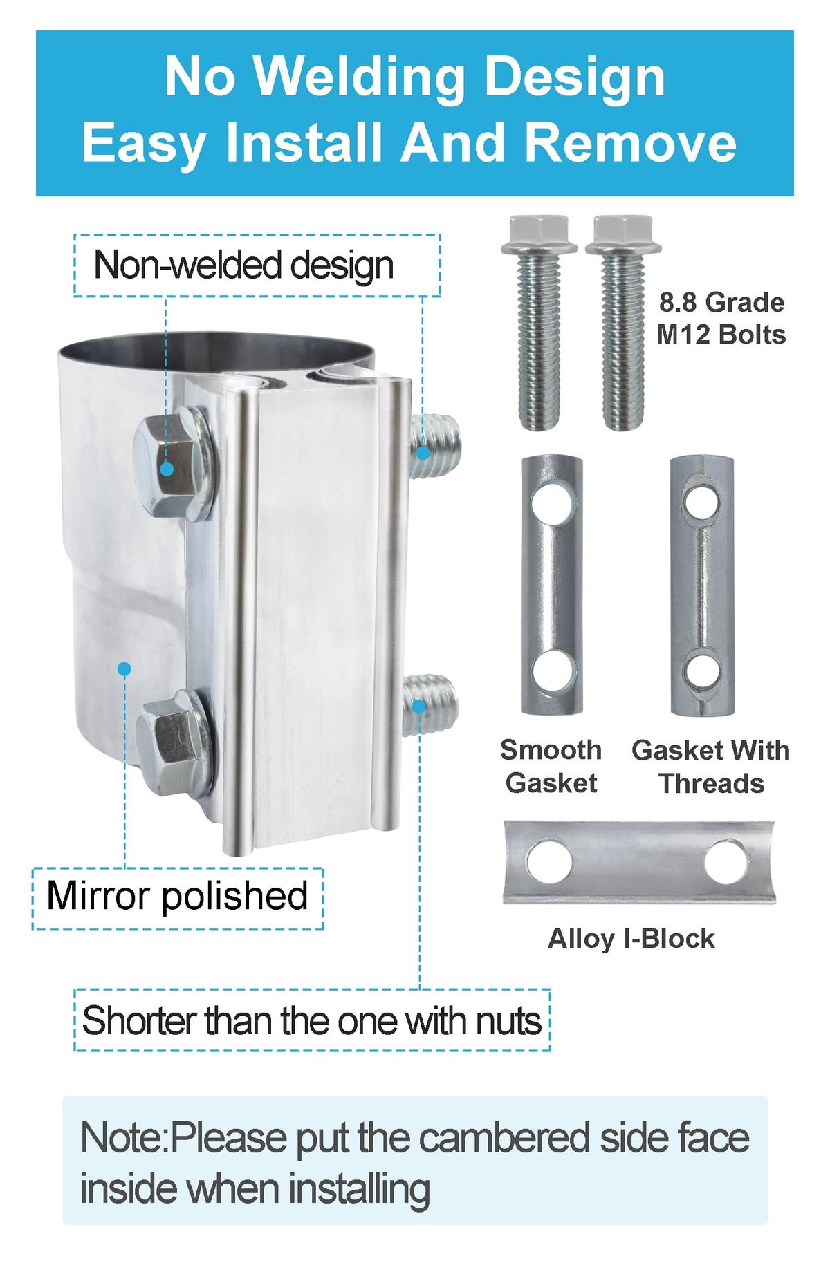 Q: How do I install the DecoHongDi exhaust clamp?A: Installation is straightforward as the lap joint design eliminates the need for nuts. Simply ensure both bolt parts are partially screwed into the gasket before tightening the first bolt to achieve a secure fit.