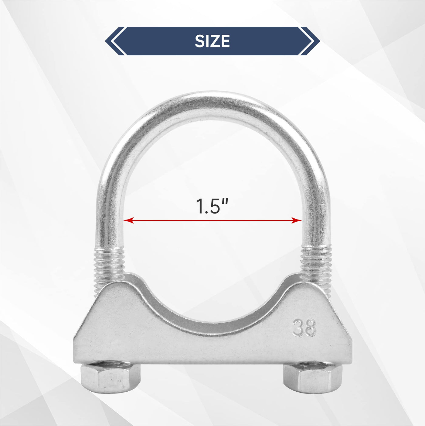 100% Brand New U-Bolt | Saddle Exhaust Muffler Heavy Duty U Bolt Clamp Band Fitment:Great for 1.25'' OD pipe. such as exhaust pipe, muffler tips etc Material: made of Mild Steel Clamp Type: U-Bolt Clamp Size: 1.25'' Color: Silver Directly bolt-on with no modification require Profession Installation highly recommended Available in a wide range of styles and sizes Helps to ensure a leak free connection No Instruction Included