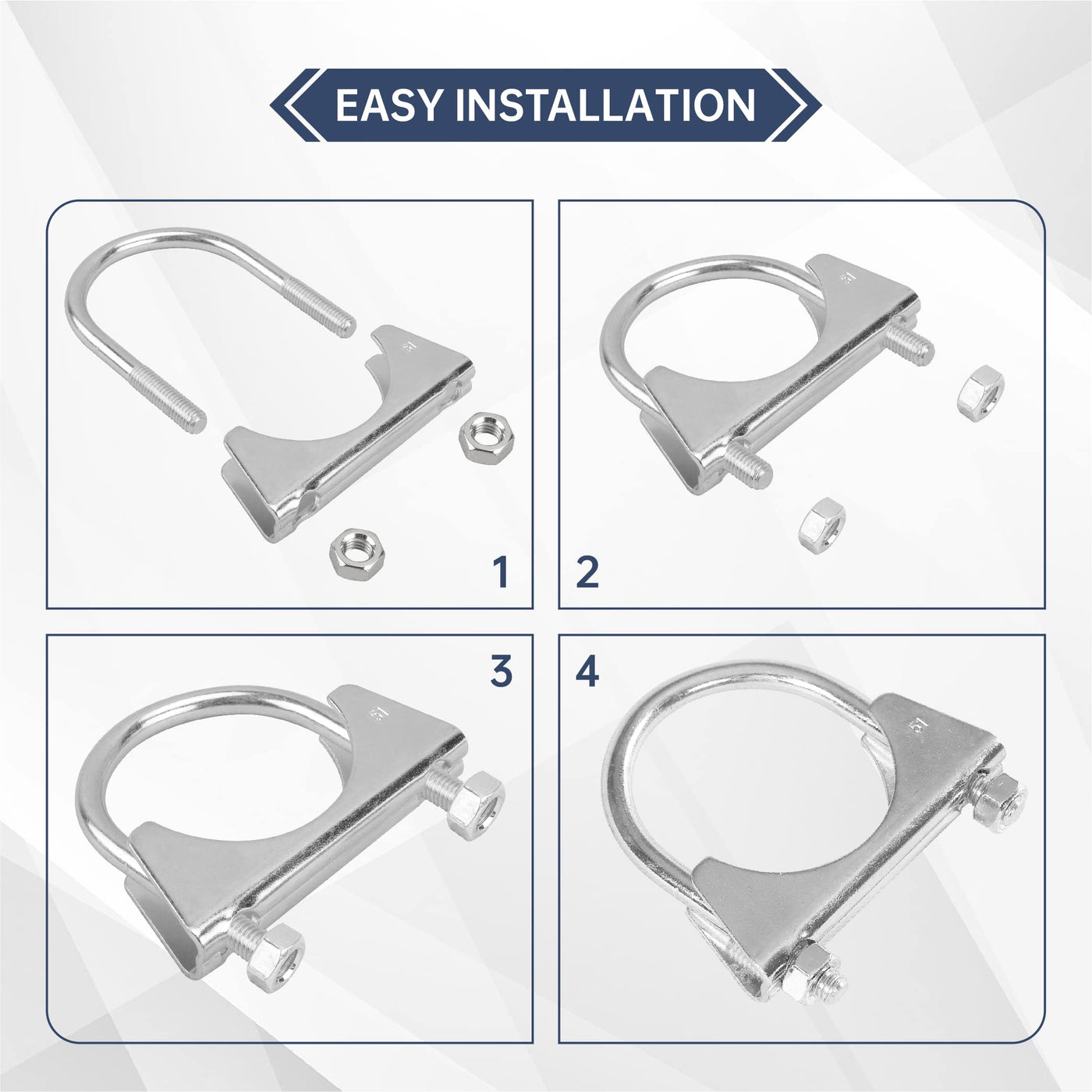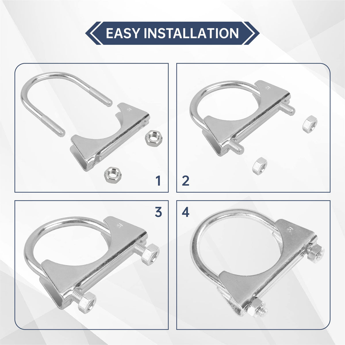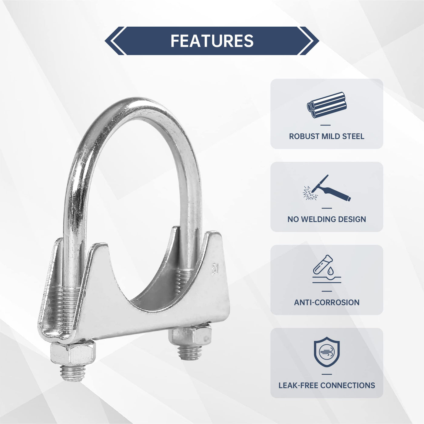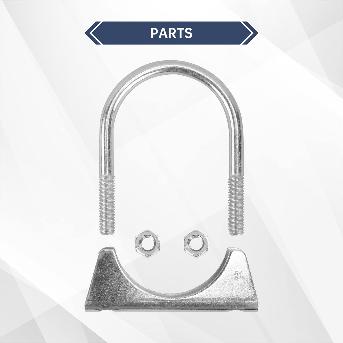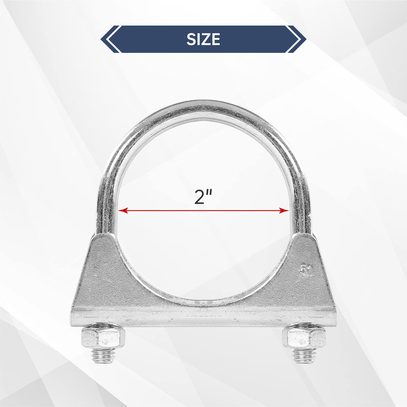 100% Brand New U-Bolt | Saddle Exhaust Muffler Heavy Duty U Bolt Clamp Band Fitment:Great for 2'' OD pipe. such as exhaust pipe, muffler tips etc Material: made of Mild Steel Clamp Type: U-Bolt Clamp Size: 2'' Color: Silver Directly bolt-on with no modification require Profession Installation highly recommended Available in a wide range of styles and sizes Helps to ensure a leak free connection No Instruction Included.