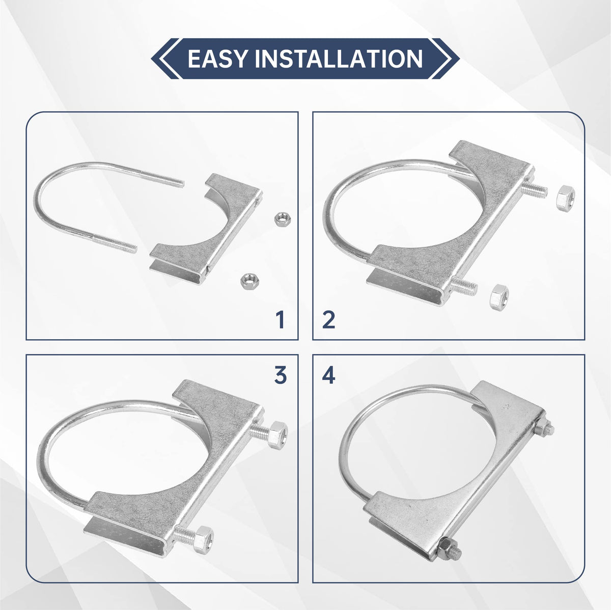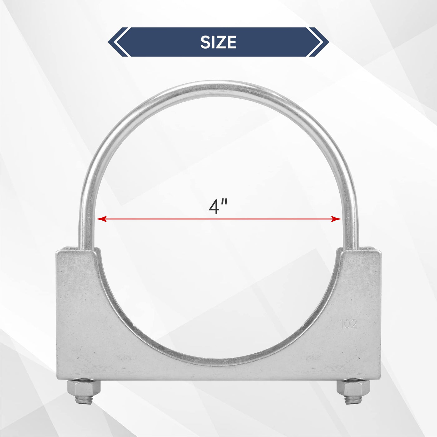 100% Brand New U-Bolt | Saddle Exhaust Muffler Heavy Duty U Bolt Clamp Band Fitment:Great for 4'' OD pipe. such as exhaust pipe, muffler tips etc Material: made of Mild Steel Clamp Type: U-Bolt Clamp Size: 4'' Color: Silver Directly bolt-on with no modification require Profession Installation highly recommended Available in a wide range of styles and sizes Helps to ensure a leak free connection No Instruction Included.