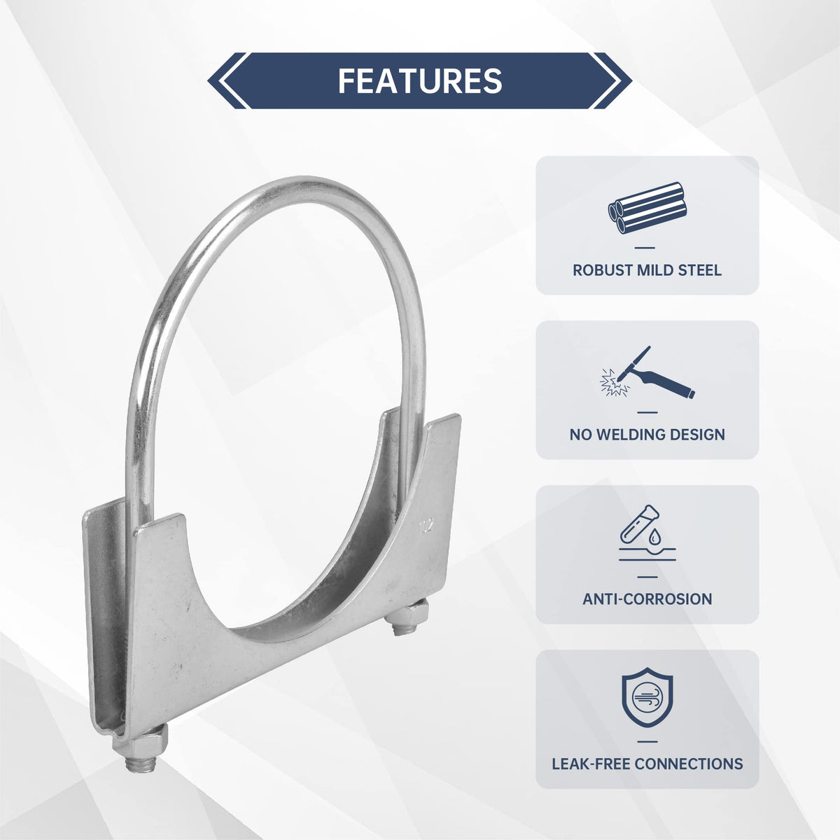 100% Brand New U-Bolt | Saddle Exhaust Muffler Heavy Duty U Bolt Clamp Band Fitment:Great for 4'' OD pipe. such as exhaust pipe, muffler tips etc Material: made of Mild Steel Clamp Type: U-Bolt Clamp Size: 4'' Color: Silver Directly bolt-on with no modification require Profession Installation highly recommended Available in a wide range of styles and sizes Helps to ensure a leak free connection No Instruction Included.
