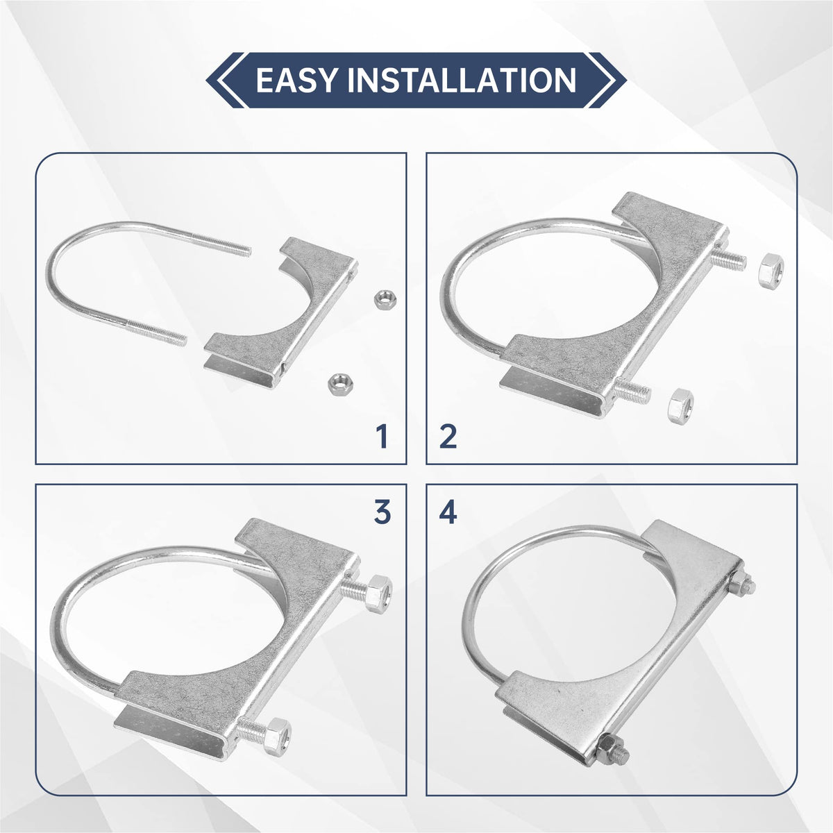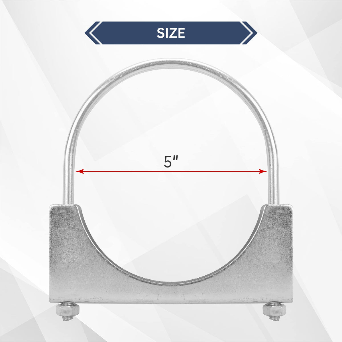 100% Brand New U-Bolt | Saddle Exhaust Muffler Heavy Duty U Bolt Clamp Band Fitment:Great for 5'' OD pipe. such as exhaust pipe, muffler tips etc Material: made of Mild Steel Clamp Type: U-Bolt Clamp Size: 5'' Color: Silver Directly bolt-on with no modification require Profession Installation highly recommended Available in a wide range of styles and sizes Helps to ensure a leak free connection No Instruction Included.