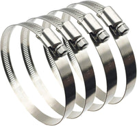 Durable Material: made of high quality 304 stainless steel, rust-proof, water-proof, corrosion-resistant, strong, durable and long lasting use. | Powerful function: Adopts an open inner and outer ring structure and fastened with bolts. Smooth surface, torsion-resistant and pressure-resistant, tightly locked and large adjustment range. Provides an excellent seal with a variety of hose materials, effectively solves the problem of liquid and gas leakage of the hose. | Easy to use: Just loosen or tighten the screw of hose clips by a screwdriver to adjust the size, attach hoses to the fitting tightly. Can be applied to secure hoses, pipe, cable, tube, automotive, industrial, boat, etc. | Package includes: 4 Pieces 4" hose clamps, fits hoses from 3.5” diameter up to 4”. | 100% Satisfaction guarantee and reliable customer service within a 24 hour time support.