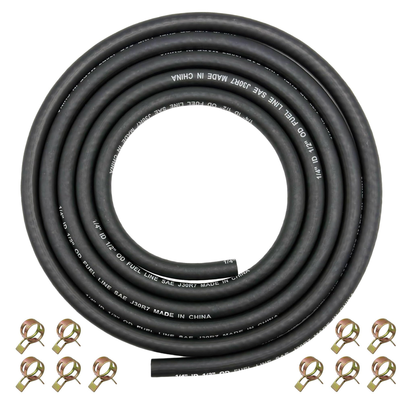 YGQ 1/4 ID Fuel Hose Line Braided NBR Rubber Tubing 8 Feet for Automotives Generator Lawn Mower with 10 Clamps (6.4mm ID)