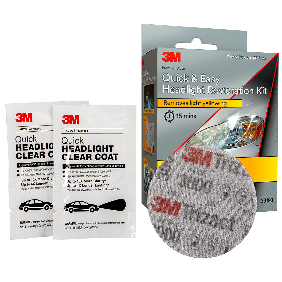 3M Quick And Easy Headlight Restoration Kit, Removes Light Yellowing In 15-Minutes, 39193, 1 Kit