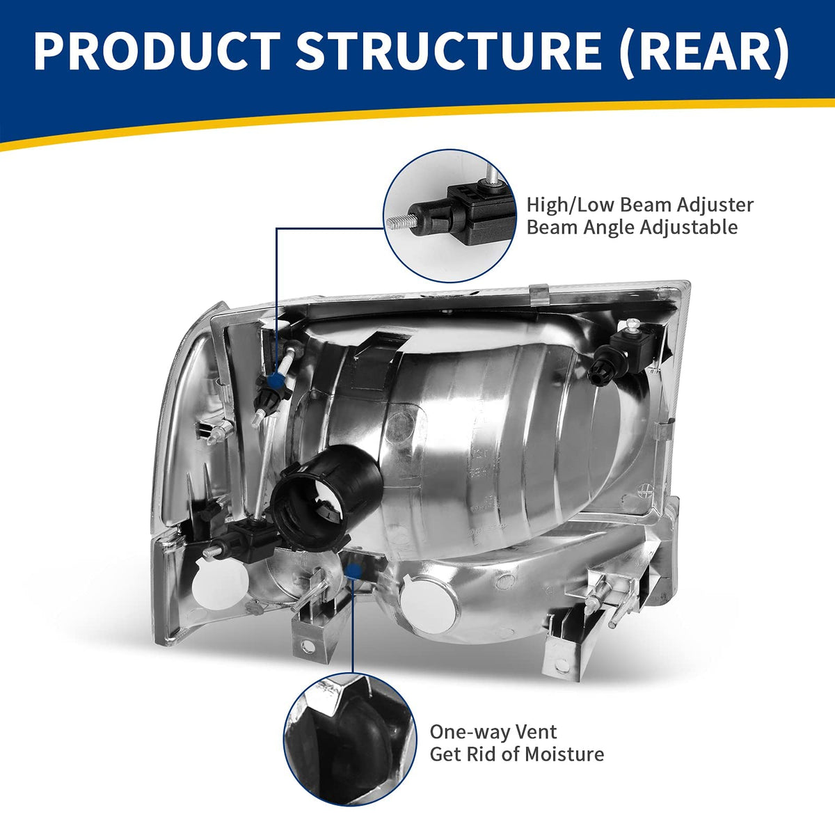 Q: How does the waterproof feature of this headlight assembly work?A: The headlight assembly is fully sealed with solid silicon and designed with one-way vents to prevent moisture from being trapped inside, ensuring durability in various weather conditions.