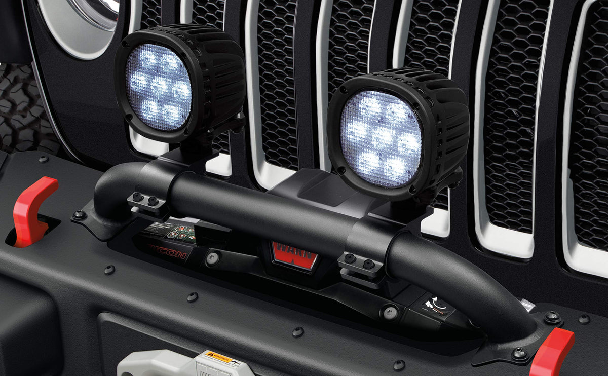Mopar 82215729 Winch Guard Light Mounting Bracket Light Mounting Bracket For Mounting Off-Road Lights To Winch Guard. Kit Includes Brackets For Mounting Two Round 5-Inch Or 7-Inch Lights