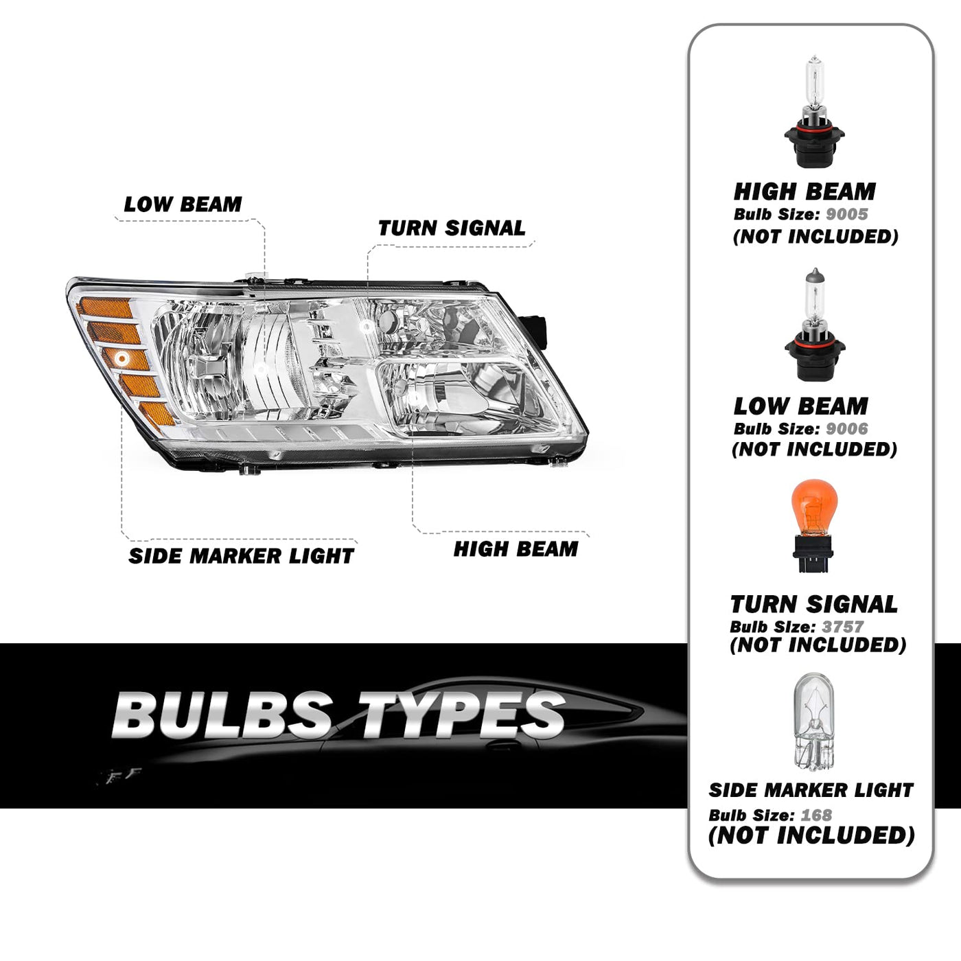 Sockir Headlight Assembly Fit For 2009-2020 Dodge Journey Headlamp Replacement Chrome Housing With Amber Reflector Right Passenger Side