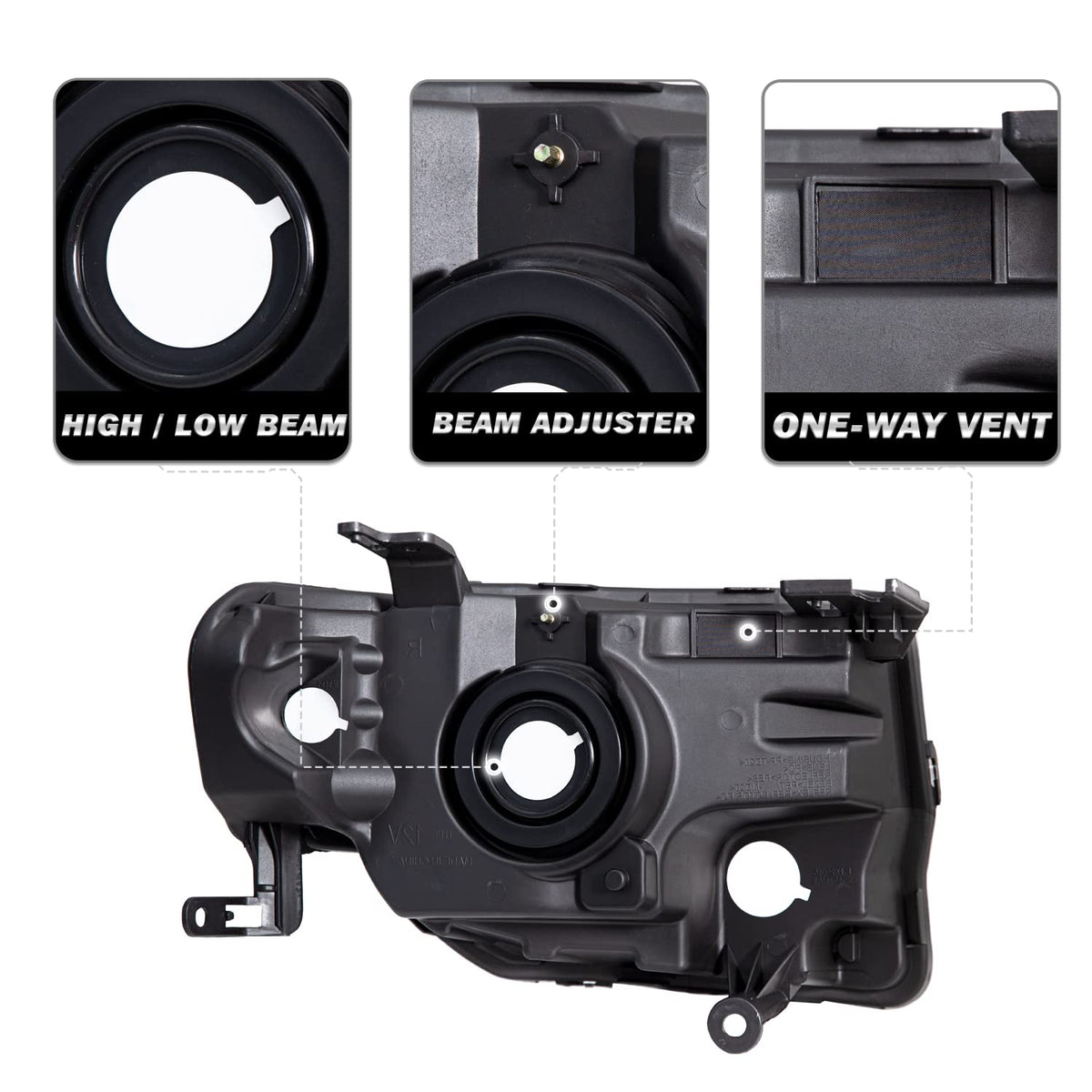 ?Fitment?Headlights Assembly Compatible With 2008 To 2012 Ford Escape. Bulbs Are Not Included. High / Low Beam Bulb Type: H13; Signal / Parking Light: 3457A; Side Marker Light: 194. Oem Part Number: ?8L8Z13008B 8L8Z13008A 9L8Z13008B 9L8Z13008A; Partslink Number: ?Fo2503229. | ?Waterproof?Meets Sae & Dot Standards. Fully Sealed With Solid Silicone And Designed With One-Way Vents To Keep Moisture From Trapping Inside The Case, No Need To Worry About Corrosion Or Moisture In All Weather Conditions | ?Impact-Resistant & Tough?Constructed With Durable Polycarbonate Lenses That Provide Excellent Protection From Road Debris Abuse And The Impact Of Branches On The Trail, The High-Impact Shell Also Better Withstands The Shock And Vibration Of Off-Road Adventures | ?Brighter Lighting & Safety Reflector?Metal Parabolic Reflectors Provide More Light Output For Wider, Smoother Beams. Side Microprism Reflectors Let Oncoming Vehicles Or Passersby Quickly Notice You At Night, Keeping You And Others Safe While Driving | ?Direct Replacement?Plug-N-Play Installation. Direct Bolt-On Oe Fitment Or Replacement For The Stock Unit; Requires No Modification Or Drilling. Installation Instruction Is Not Included. Professional Installation Would Be Highly Recommended. Comes With Driver (Left) Side