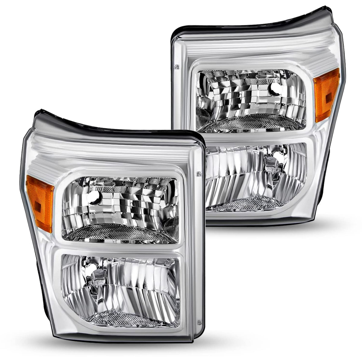 Sockir Headlight Assembly Set For 2011-2016 Ford F-250 F-350 F-450 F-550 Super Duty Passenger And Driver Side (Chrome Housing With Amber Reflector)