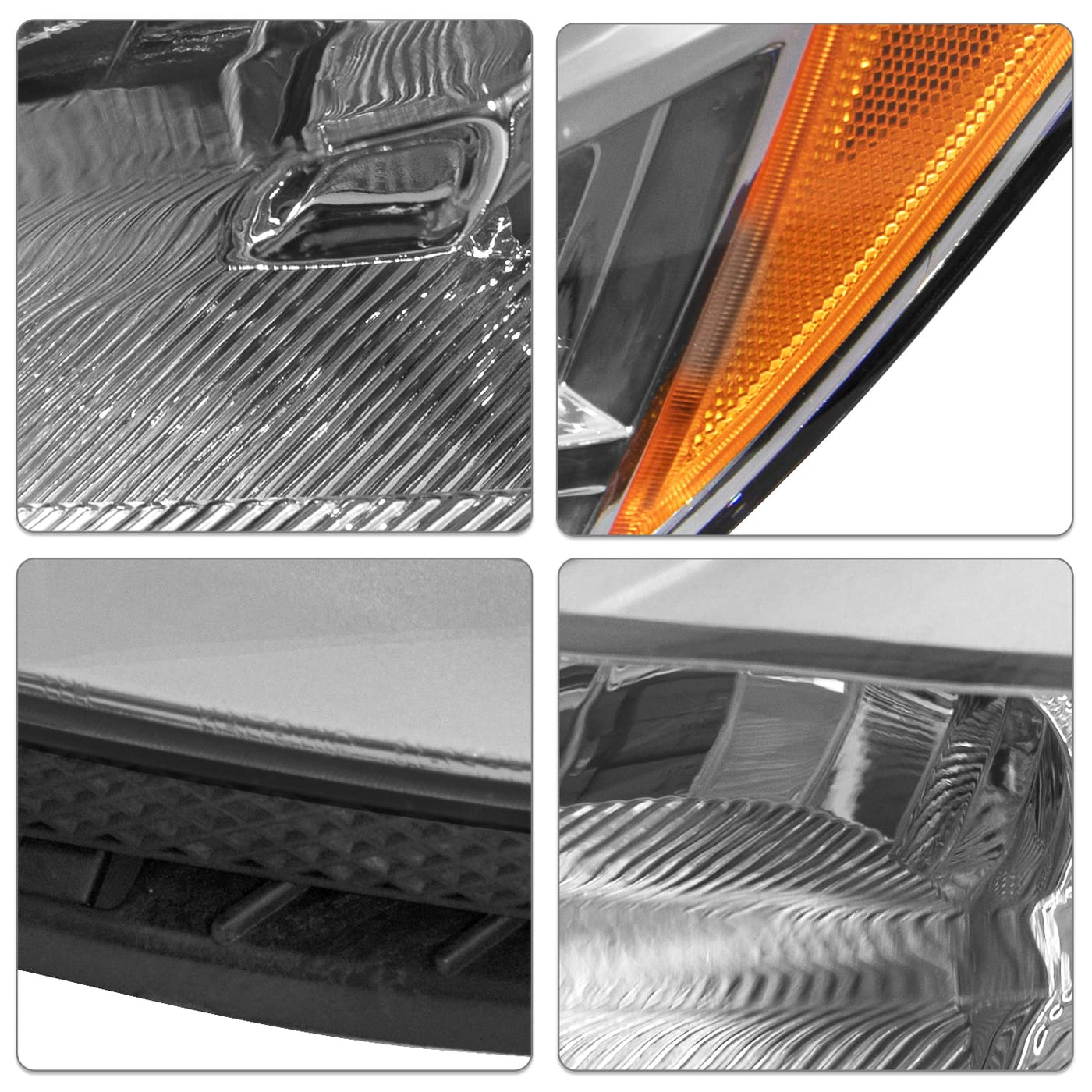Sockir Headlight Compatible With 2013-2016 Ford Escape Replacement Halogen Headlamp,(Chrome Housing With Amber Reflector) Driver & Passenger Side