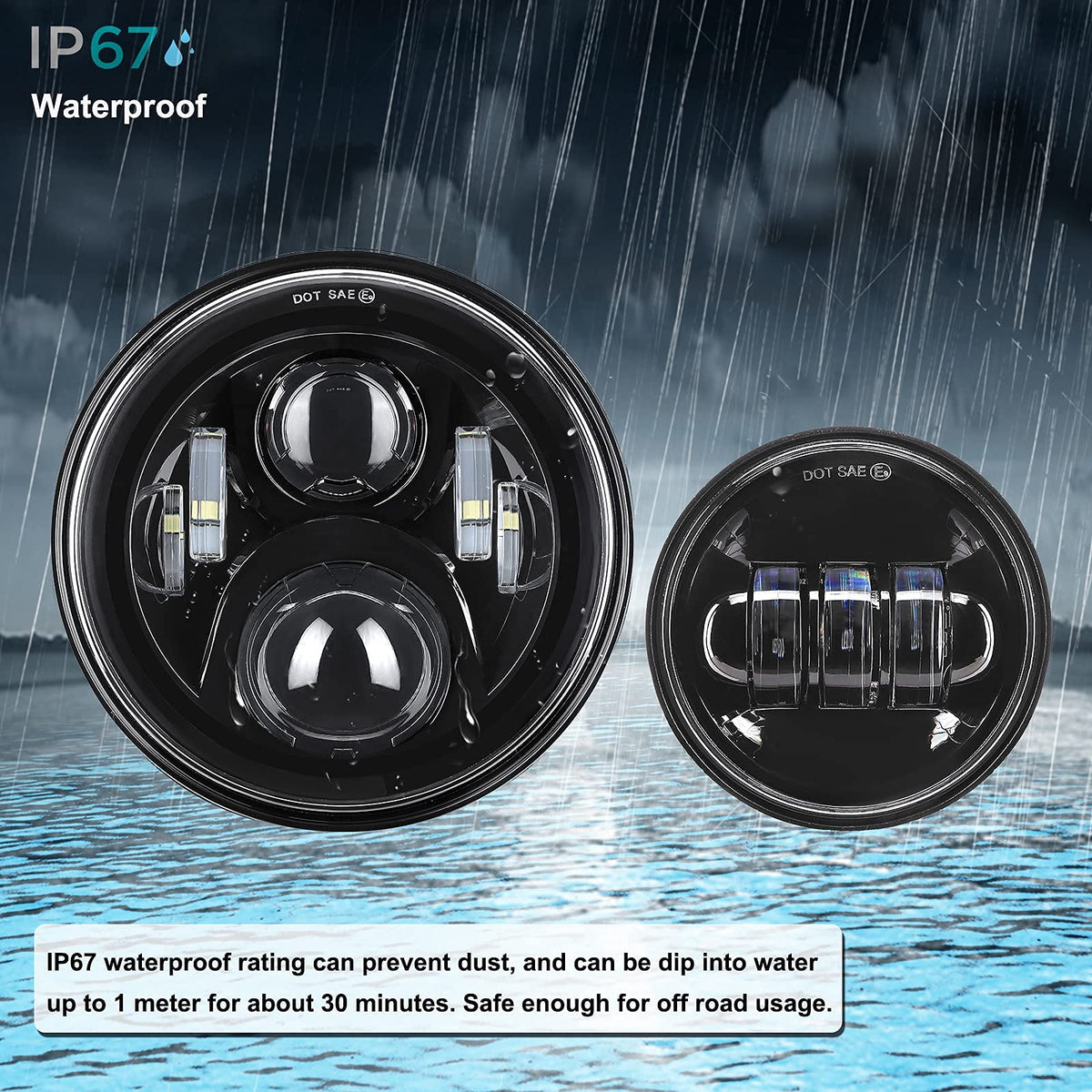 Q: Is the AlyoNed headlight waterproof?A: Yes, it has an IP67 waterproof rating. This rating ensures it can withstand exposure to water and harsh weather conditions.