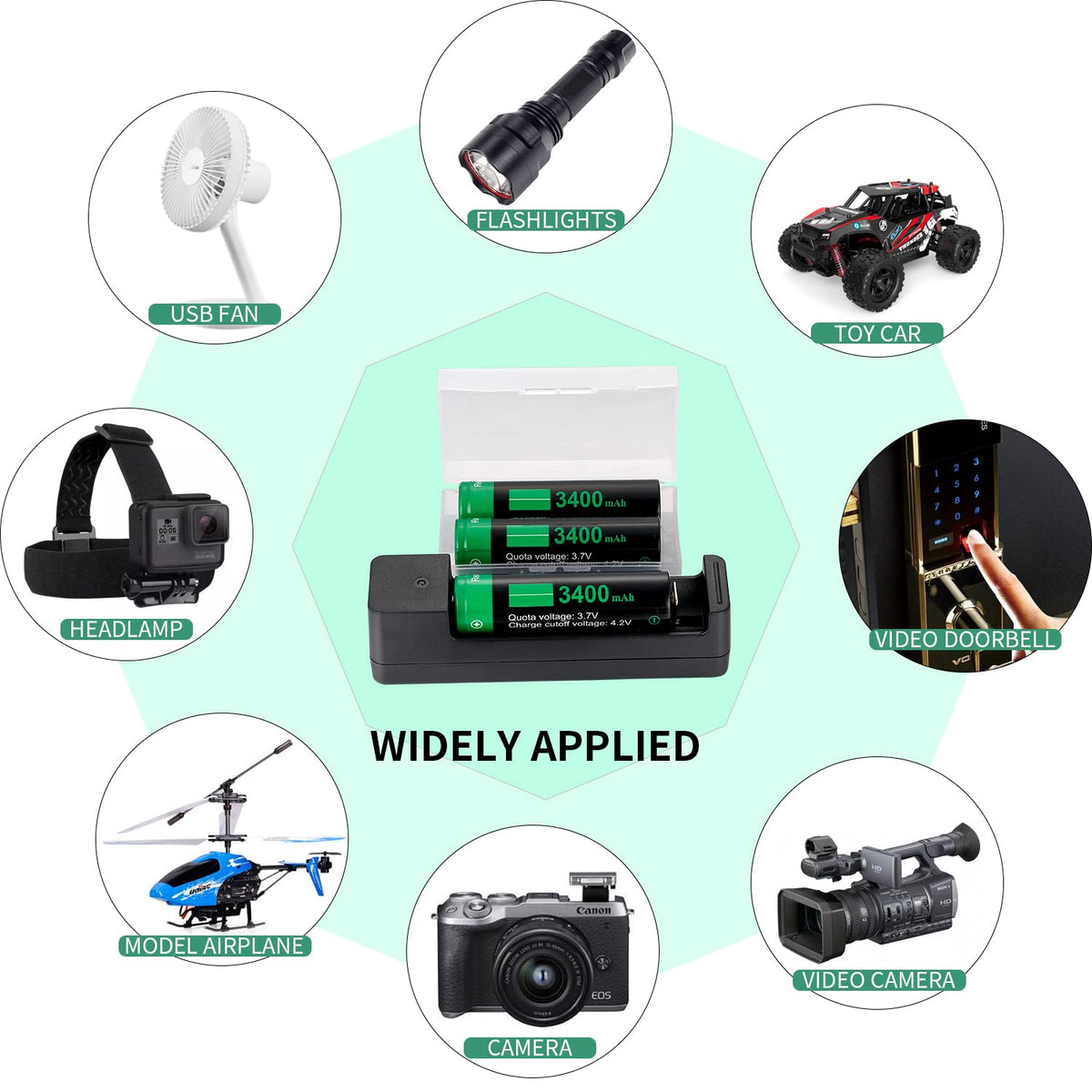 18650 Battery Charger Set, 3.7V Rechargeable Flat-Top Battery For Flashlights, Headlights, Fans, Digital Cameras, Toys, Radios,