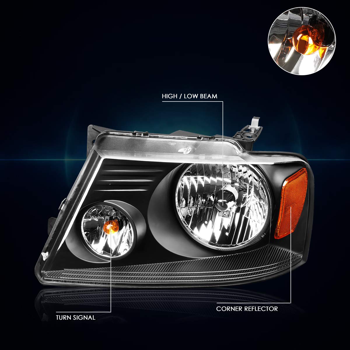 A headlight (headlamp) is a lamp attached to the front of a vehicle to light the road ahead. Headlight performance has steadily improved throughout the automobile age, spurred by the great disparity between daytime and nighttime traffic fatalities. Headlights are one of the most important components of your vehicle; they allow you to see the road in front of you clearly during the night and in any bad weather that may arise. Our headlights upgrade the face of your vehicle with clear style and extreme range.Includes: 1 X Pair of Headlights (Left & Right)Compatible with 04-08 Ford F-150Compatible with 06-08 Lincoln Mark LT100% Brand NewProfessional Installation is Highly RecommendedInstallation Instruction is NOT Included