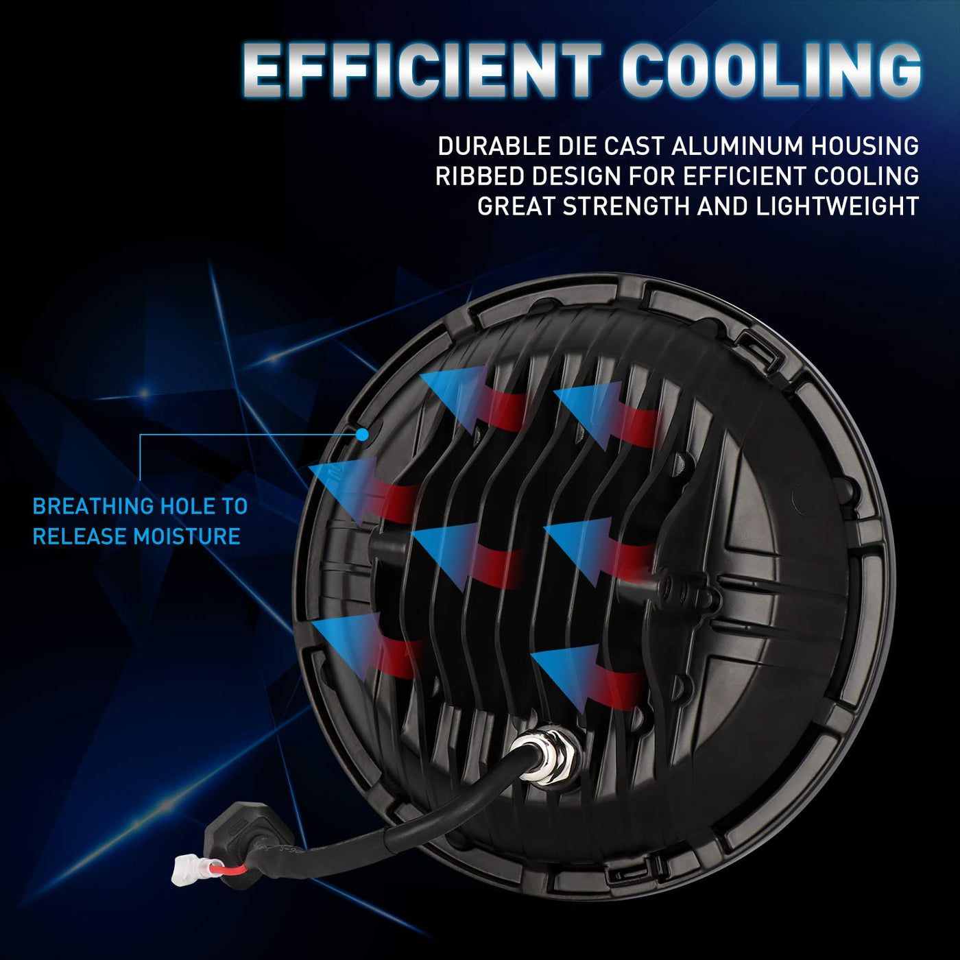 Aaiwa Led Headlight For Wrangler, 7 Inch Round Headlights 105W Compatible With Jeep Wrangler Jk Tj Lj Cj 1997-2020 Motorcycle Br