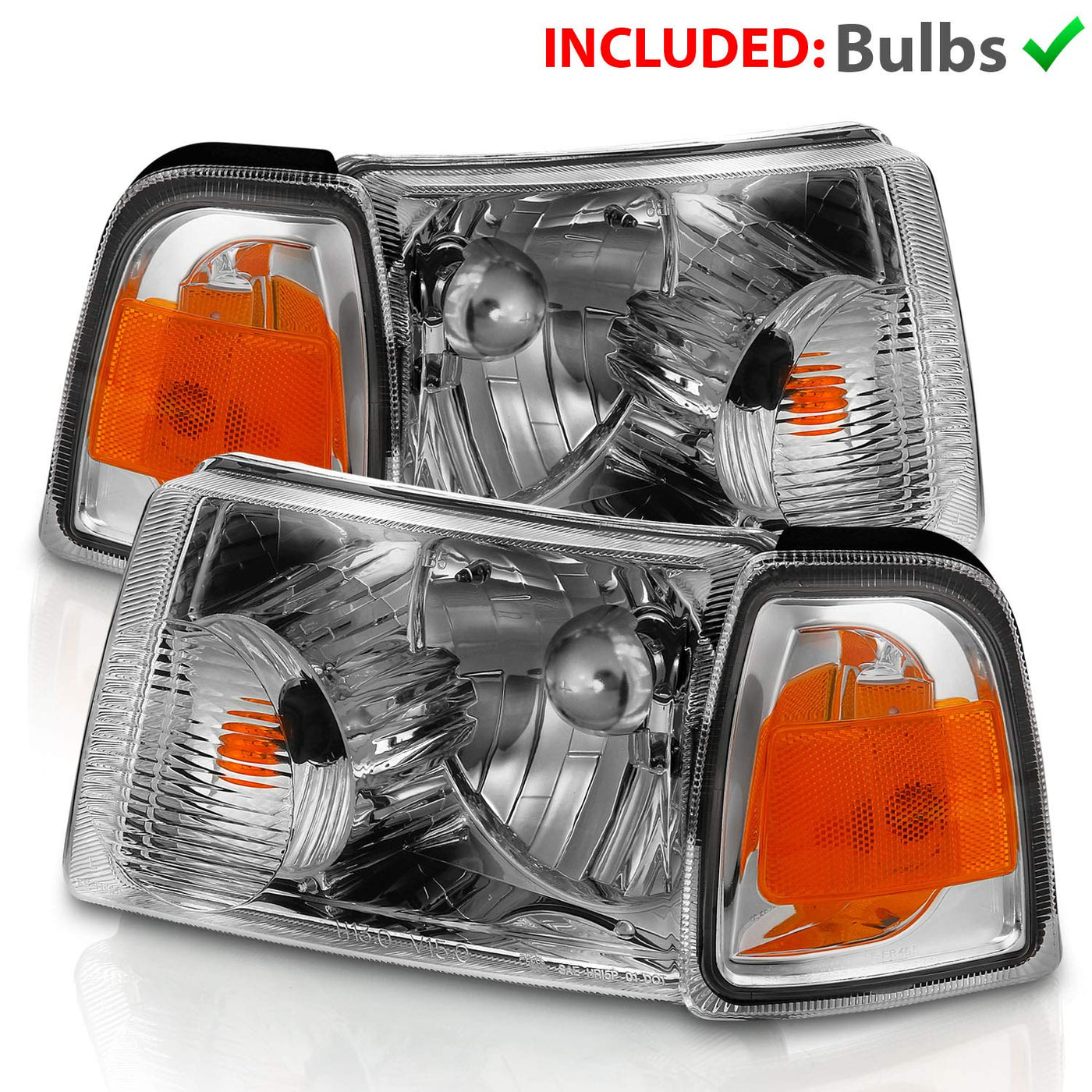 Amerilite For 2001-2011 Ford Ranger Pickup Truck Chrome Factory Oe Style Replacement Headlights Assembly Corner Lamp Combo Set - Driver And Passenger Side