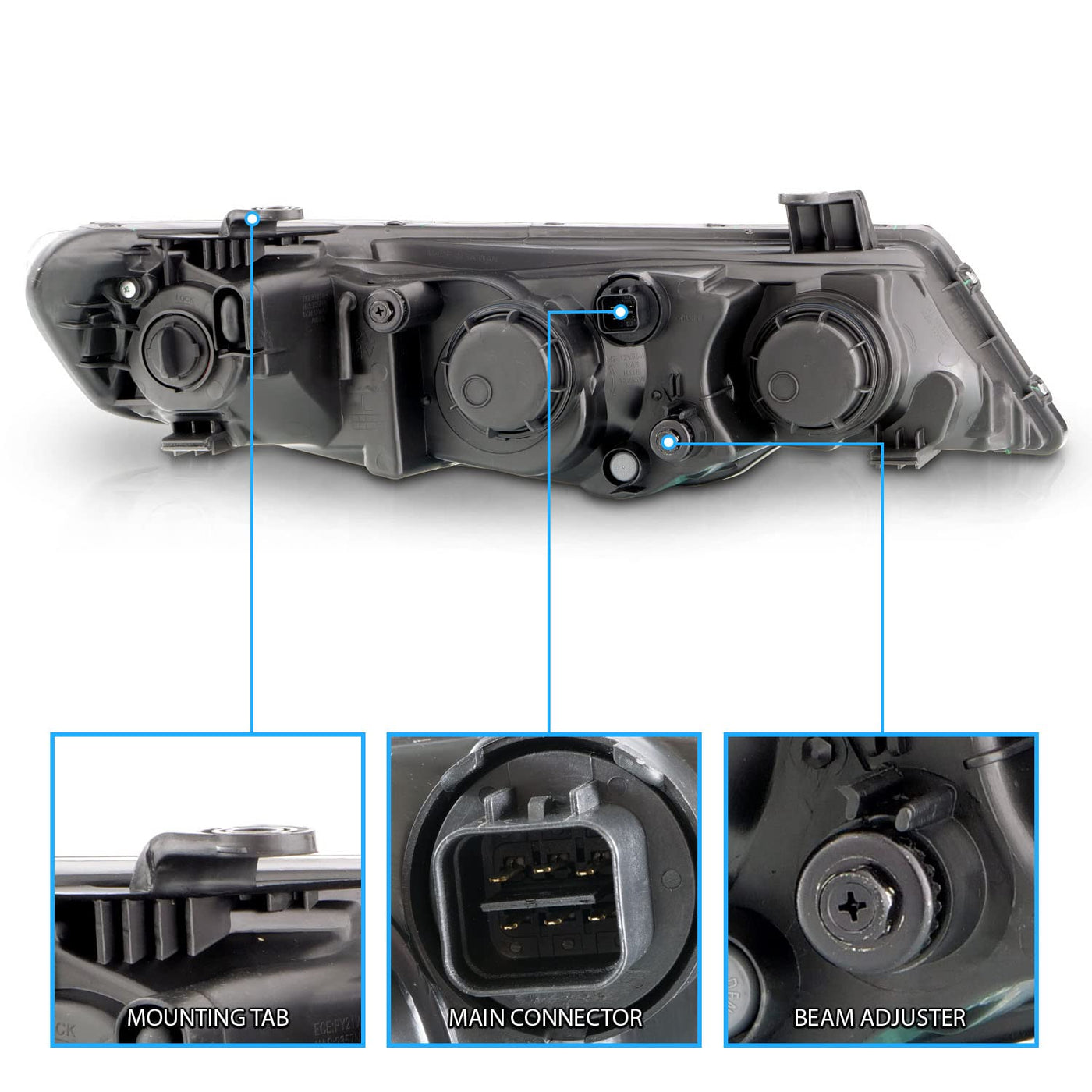 Amerilite For 2010-2013 Forte Koup Dual Led Halos + Tube Black Replacement Projector Headlights Pair - Passenger And Driver Side