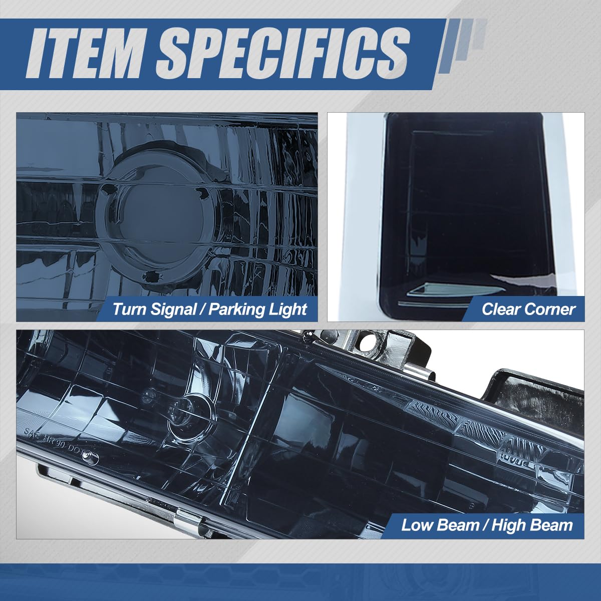 A Headlight (headlamp) is a lamp attached to the front of a vehicle to light the road ahead. Headlight performance has steadily improved throughout the automobile age, spurred by the great disparity between daytime and nighttime traffic fatalities. Headlights are one of the most important components of your vehicle; they allow you to see the road in front of you clearly during the night and in any bad weather that may arise. Our headlights upgrade the face of your vehicle with clear style and extreme range.Package Included:1 x Pair of Headlights1 x Pair of Bumper Lights1 x Pair of Corner LightsThis product is compatible with:94 Chevrolet Blazer Full Size94-99 Chevrolet C150094-00 Chevrolet C250094-02 Chevrolet C350094-99 Chevrolet K150094-00 Chevrolet K250094-00 Chevrolet K350094-99 Chevrolet C1500 Suburban94-99 Chevrolet C2500 Suburban94-99 Chevrolet K1500 Suburban94-99 Chevrolet K2500 Suburban95-99 Chevrolet TahoeFits Models with Composite Headlights ONLY