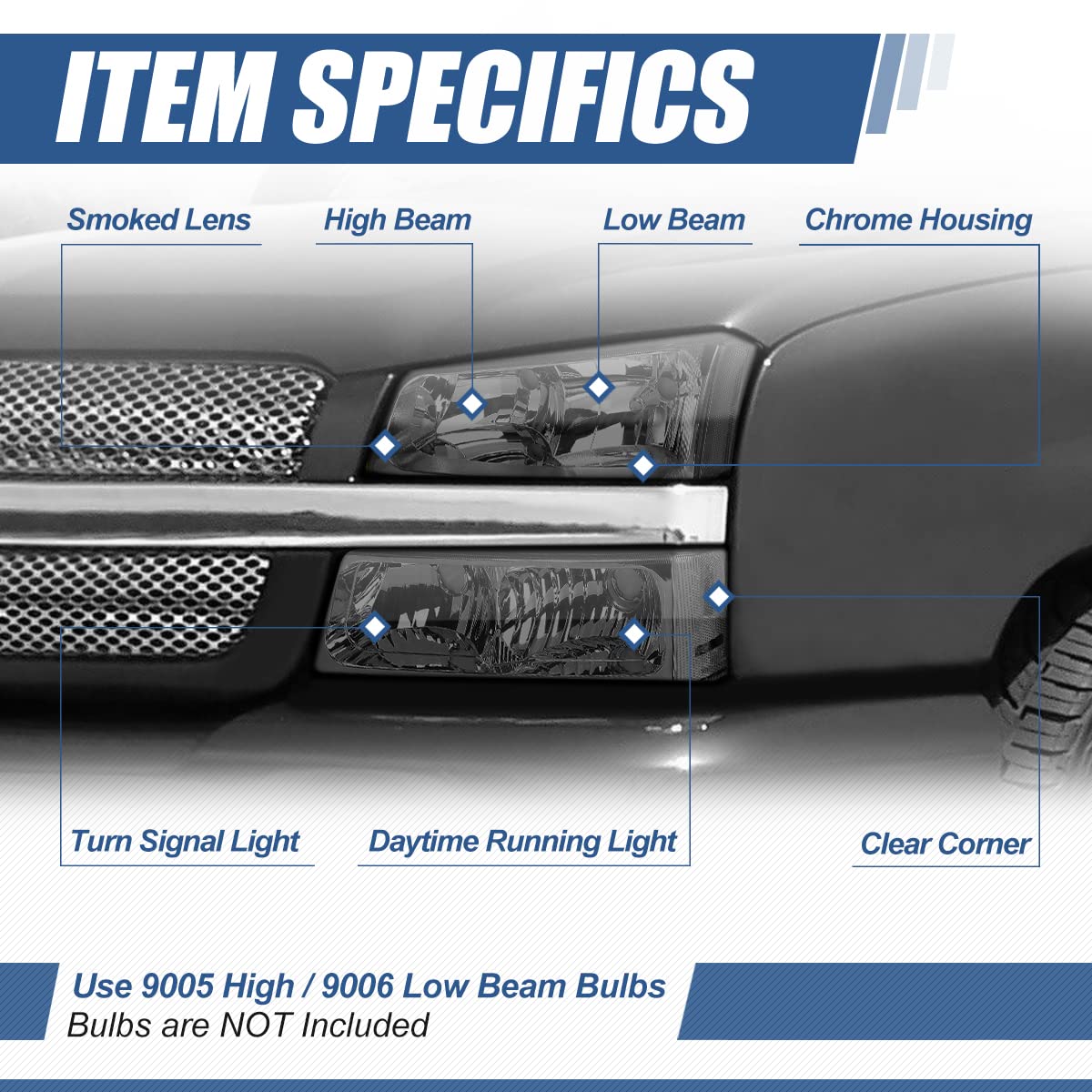 A Headlight (Headlamp) Is A Lamp Attached To The Front Of A Vehicle To Light The Road Ahead. Headlight Performance Has Steadily Improved Throughout The Automobile Age, Spurred By The Great Disparity Between Daytime And Nighttime Traffic Fatalities. Headlights Are One Of The Most Important Components Of Your Vehicle; They Allow You To See The Road In Front Of You Clearly During The Night And In Any Bad Weather That May Arise. Our Headlights Upgrade The Face Of Your Vehicle With Clear Style And Extreme Range.Package Included:1 X Pair Of Headlights1 X Pair Of Bumper Lightsthis Product Is Compatible With: Compatible With Chevrolet Avalanche 1500 2003-2006 Compatible With Chevrolet Avalanche 2500 2003-2006 Compatible With Chevrolet Silverado 1500 2003-2006 Compatible With Chevrolet Silverado 1500Hd 2003-2006 Compatible With Chevrolet Silverado 2500Hd 2003-2006 Compatible With Chevrolet Silverado 3500 2003-2006 Compatible With Chevrolet Silverado 2500 2003-2004 Compatible With Chevrolet Silverado 2500Hd Classic 2007 Fit Models Without Factory Cladding Only Note: Oem Part Number: 10366037 10366038 15199557 15199556 Parkslink Number: 2521185 2520185 2502257 2503257