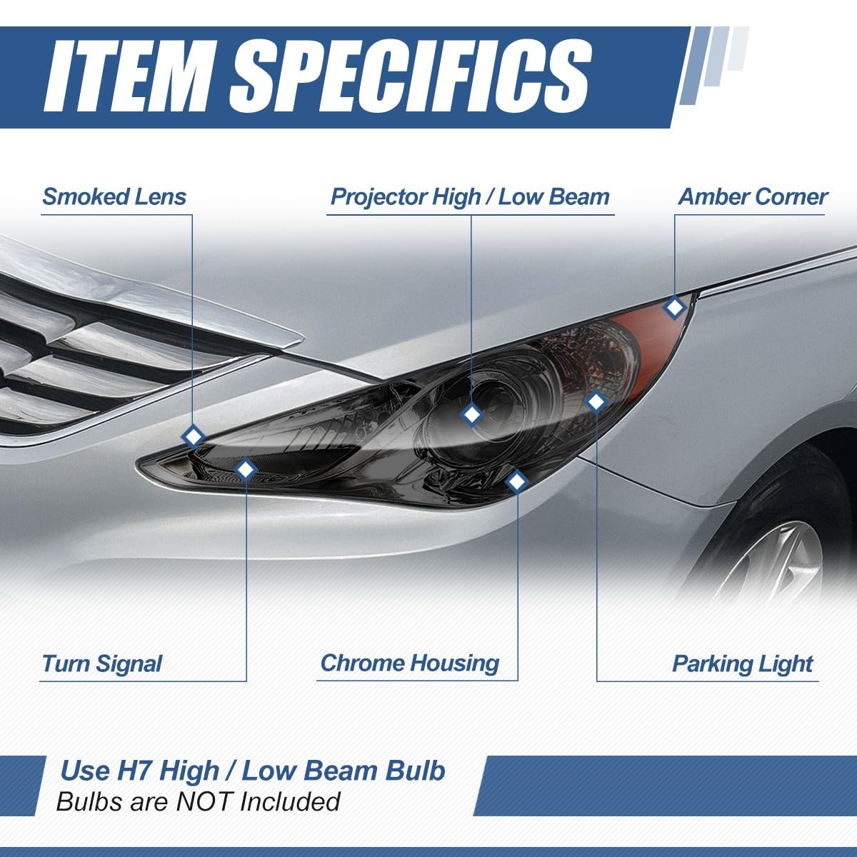 A headlight (headlamp) is a lamp attached to the front of a vehicle to light the road ahead. Headlight performance has steadily improved throughout the automobile age, spurred by the great disparity between daytime and nighttime traffic fatalities. Headlights are one of the most important components of your vehicle; they allow you to see the road in front of you clearly during the night and in any bad weather that may arise. Our headlights upgrade the face of your vehicle with clear style and extreme range.Package Included:1 X Pair of Headlights (Left & Right)This product is compatible with:Compatible with Sonata 2011-2014Fits Halogen Headlight Models OnlyDoes NOT Fit HID Headlight Equipped Models or Hybrid Models Includes: 1 X Pair of Headlights (Left & Right) This item is compatible with: Compatible with Sonata 2011-2014 Fits Halogen Headlight Models Only Does NOT Fit HID Headlight Equipped Models or Hybrid Models Note: OEM Part Number: 209150009 921013Q000 209149009 921023Q000 Parkslink Number: HY2502159 HY2503159