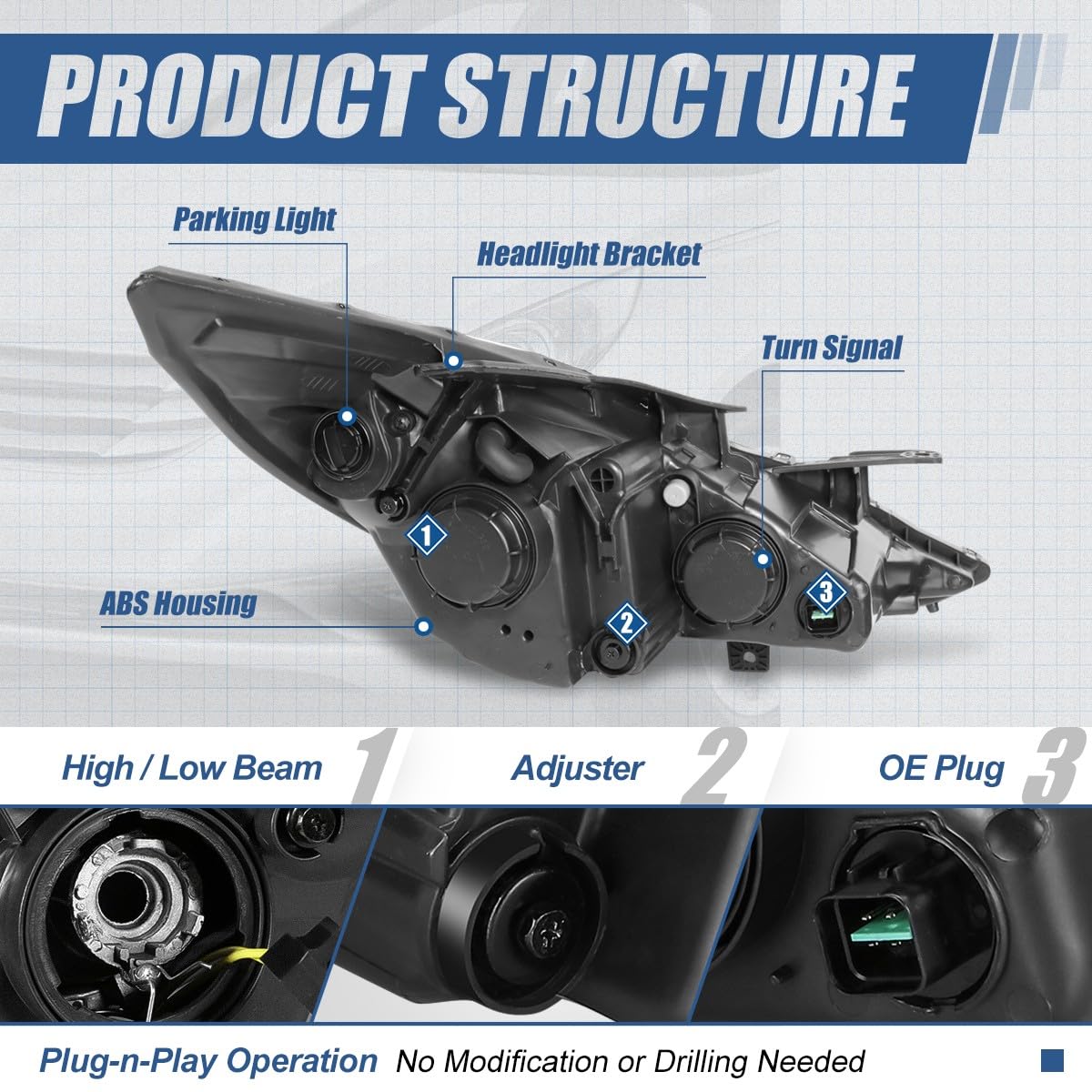 Auto Dynasty Headlights Assembly Compatible With 2011 2012 2013 2014 Sonata, Driver And Passenger Side Halogen Headlamps Replace
