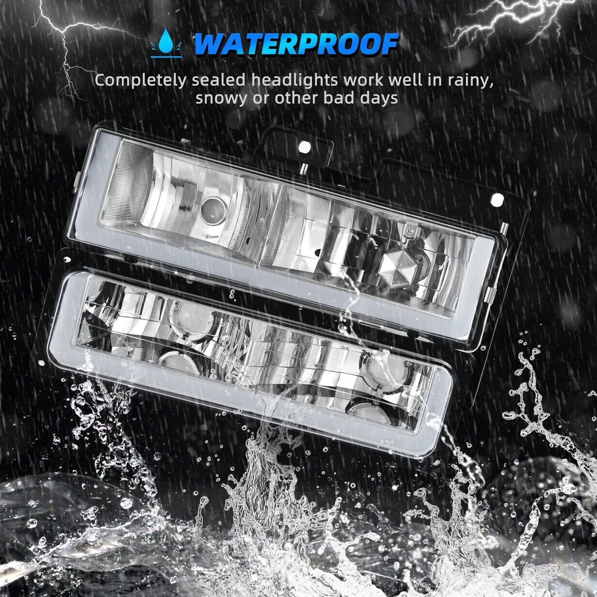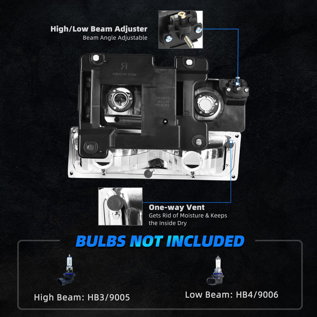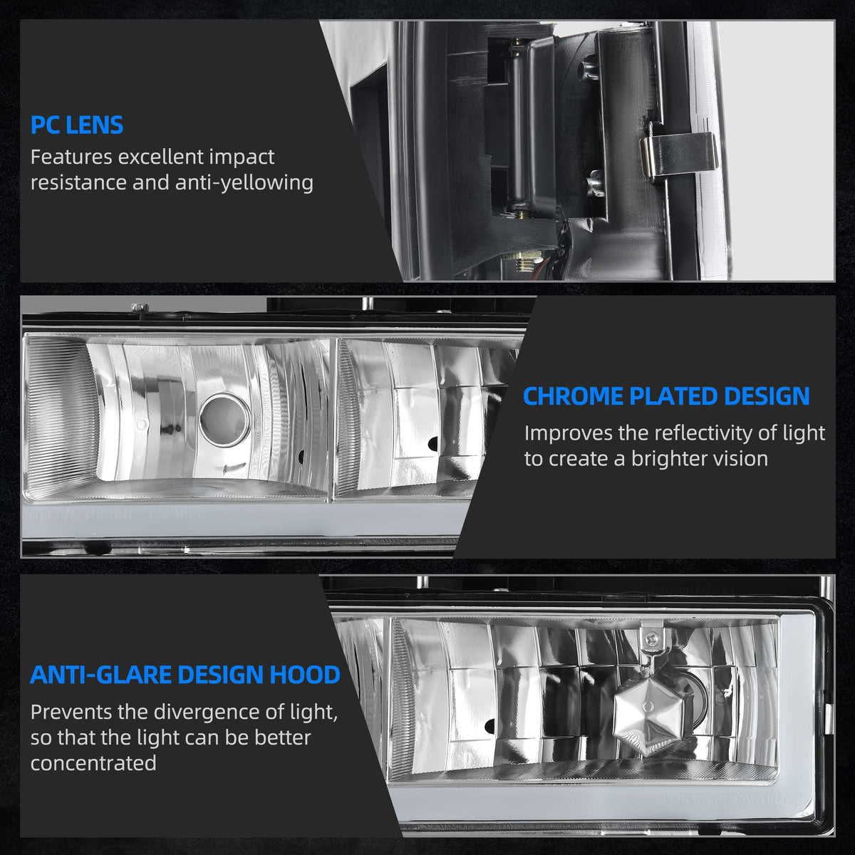 Autosaver88 Led Drl Headlights Assembly Compatible With 1994-1999 Chevy C/K C10 Suburban Tahoe Headlight Headlamp Replacement Wi