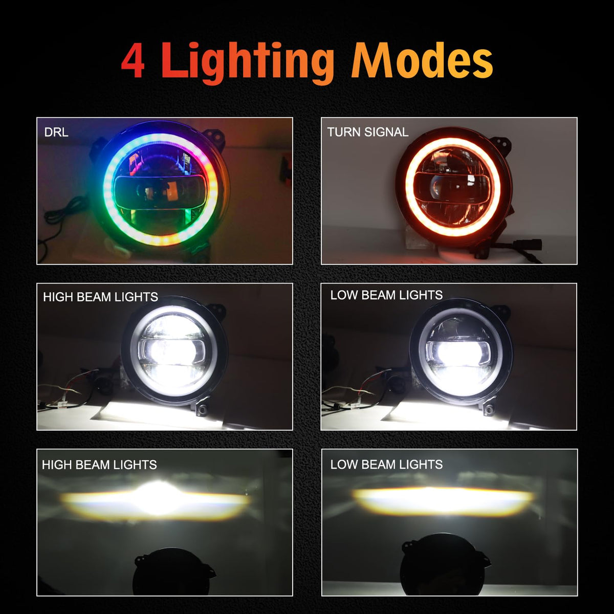 Beeyeo 9 Inch Led Headlights, Round Wrangler Headlight With Halo Drl & Turn Signal For Wrangler Jl 2018 2019 2020 2021, Gladiato