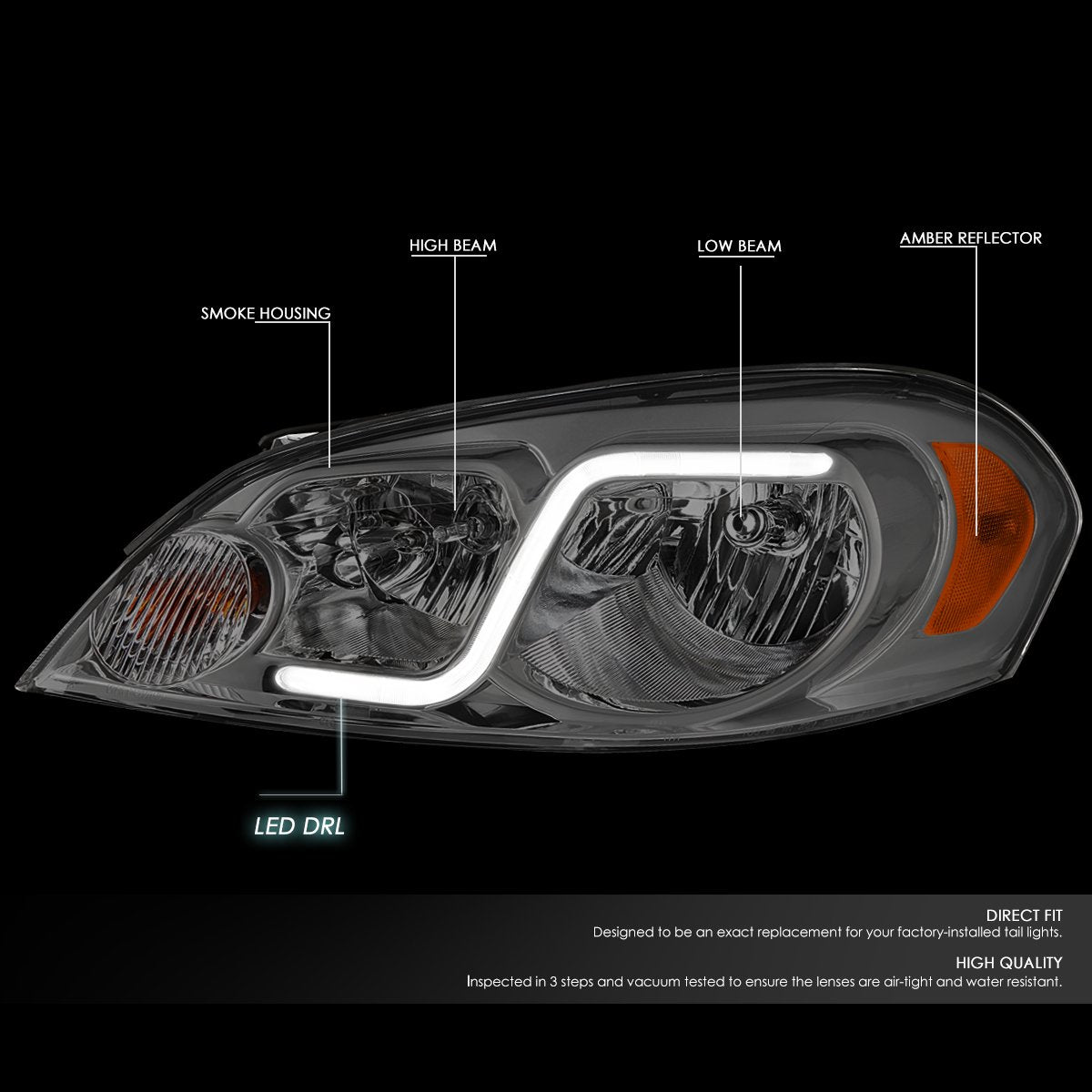 Dna Motoring Hl-Lb-Ci06-Sm-Am Smoked Amber Headlights With Led Day Running Light Strip Replacement For 06-13 Impala