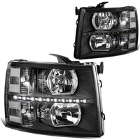 Dna Motoring Pair Led Drl Headlights Compatible With 07-13 Chevy Silverado 1500 07-14 Silverado 2500 3500 Hd, Black/Clear, Hl-Le