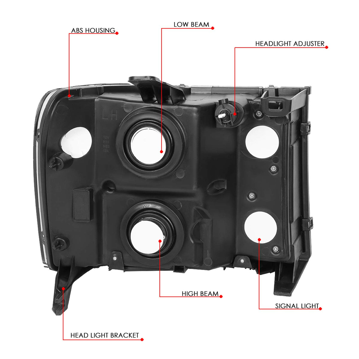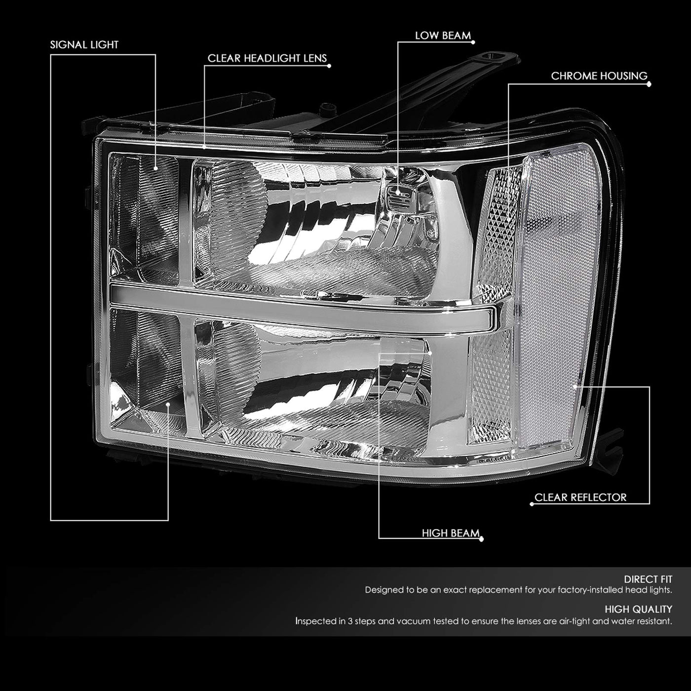 Dna Motoring Pair Oe Style Headlights Compatible With 07-13 Gmc Sierra 1500/07-14 Sierra 2500 Hd 3500 Hd, Chrome/Clear, Hl-Oh-Si