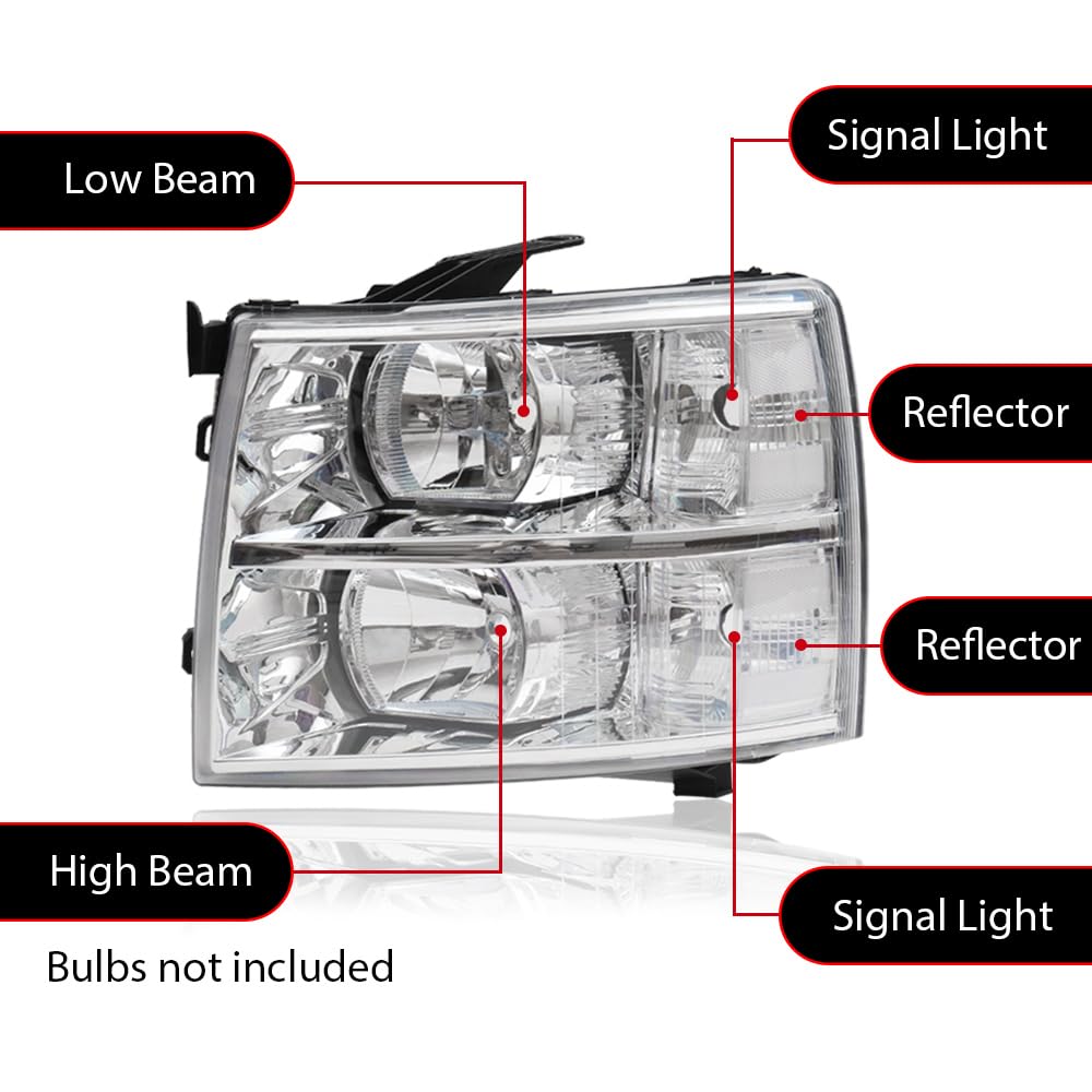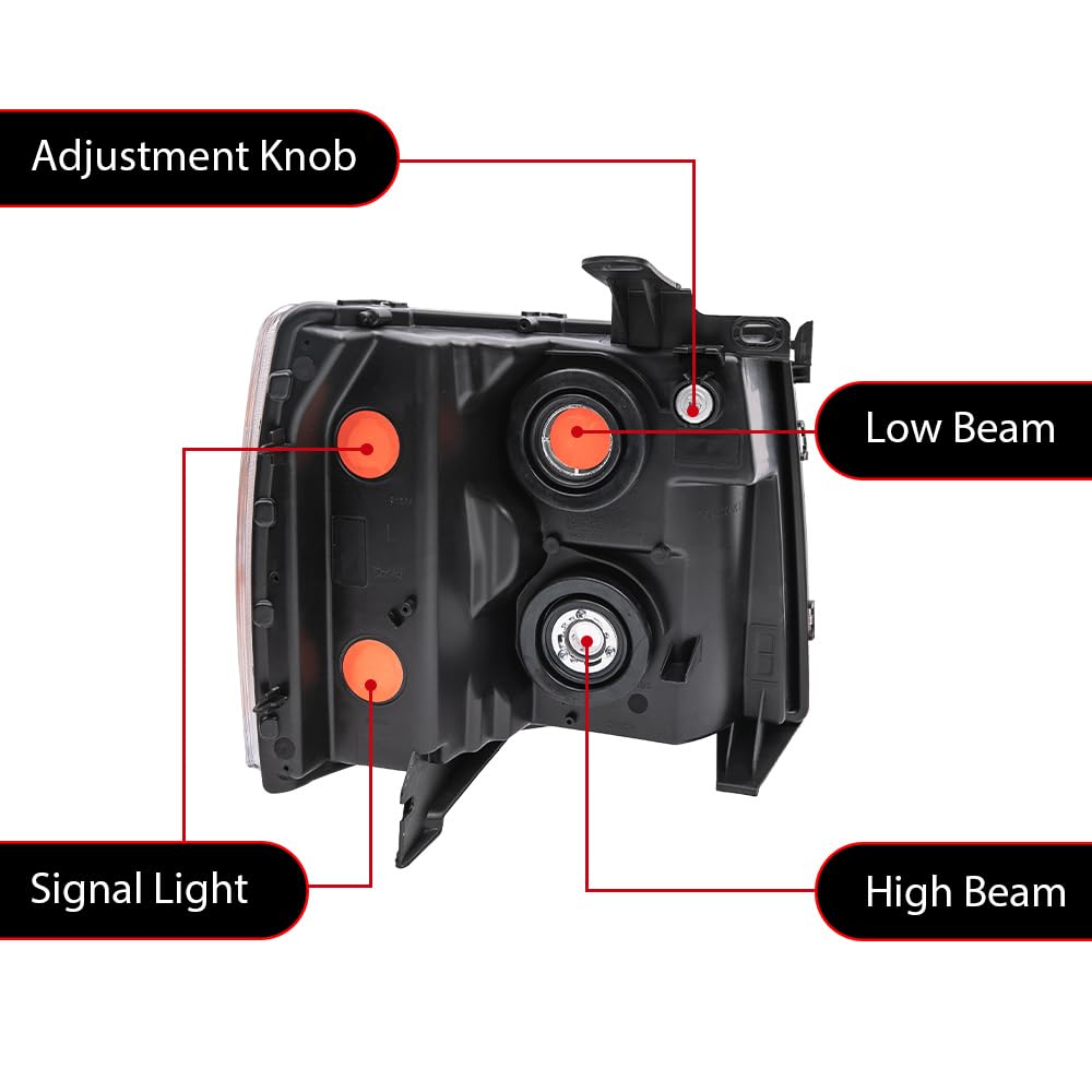 G-Plus Headlights Assembly Pair, Fit For 2007-2013 Chevy Silverado 1500/2007-2014 Silverado 2500 3500 & Hd Headlamp, Driver Side