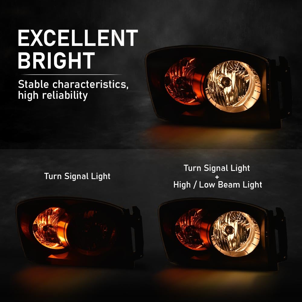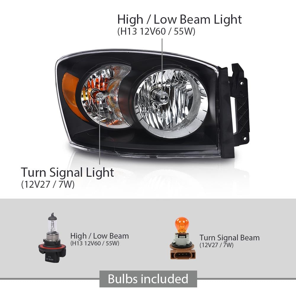 G-Plus Headlights Assembly W/Bulbs Compatible With Dodge Ram 1500 06-08/Dodge Ram 2500 3500 06-09 68003125Ad, 68003124Ad,Clear L