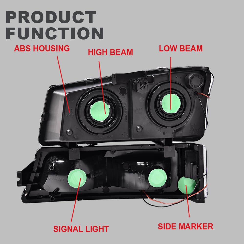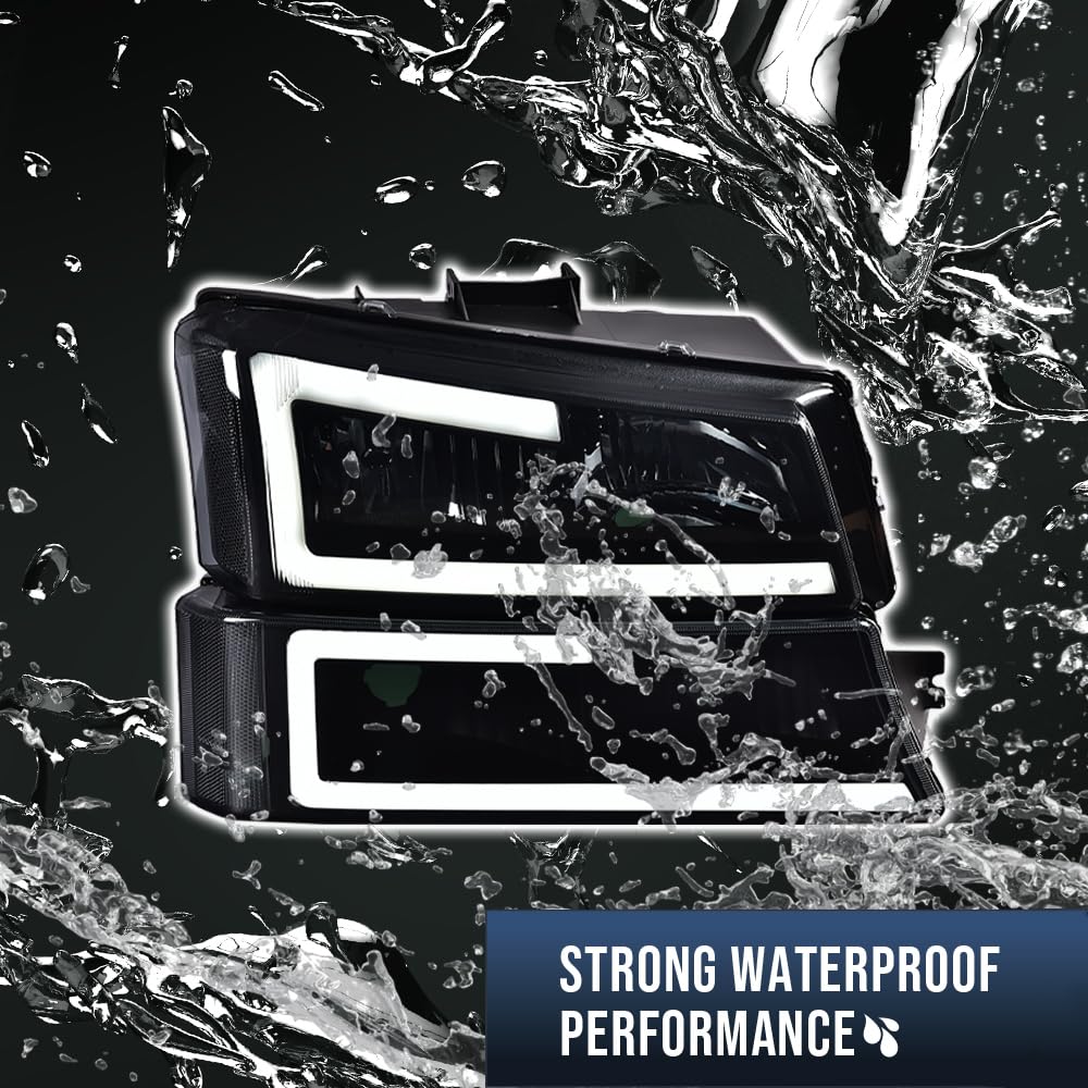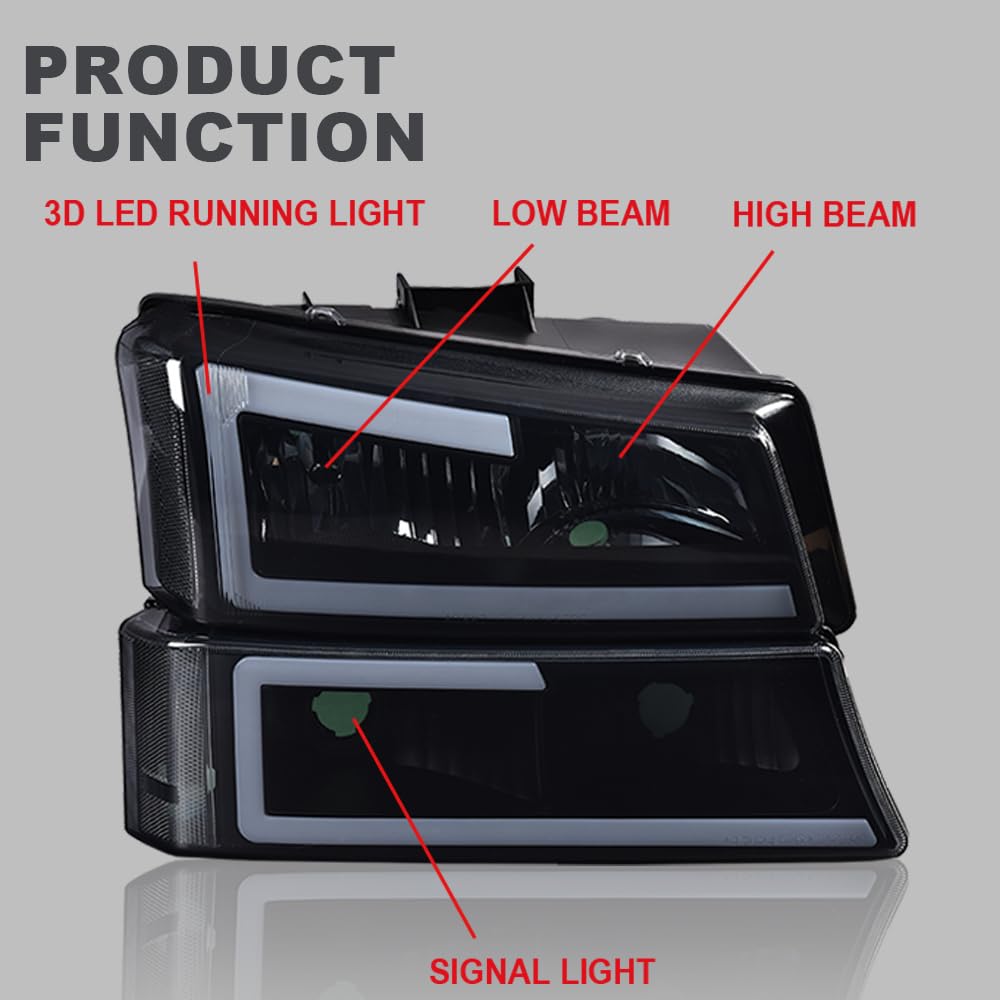 G-Plus Led Drl Headlights, Compatible With 2003 2004 2005 2006 Chevy Silverado/Avalanche 1500 2500 Bumper Headlamp, Smoky Lens B