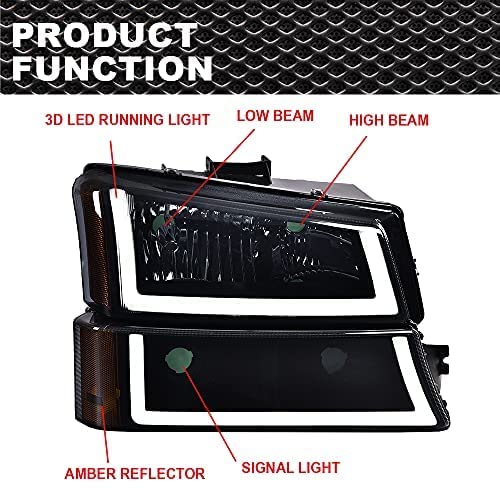 G-Plus Led Drl Headlights, Compatible With 2003 2004 2005 2006 Chevy Silverado Avalanche, Smoky Lens Black Housing Amber Reflect